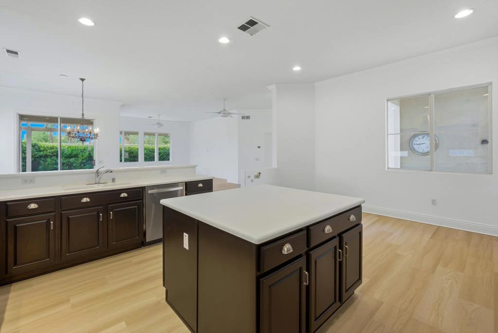 Located in the beautiful Heritage Palms Country Club, a premier 55+ resort-style community, this beautifully maintained 2-bedroom, 2-bath home with a versatile office/den or guest room featuring double doors offers comfort, style, and exceptional desert living. A convenient separate laundry room with washer and dryer opens directly to the attached two-car garage.Spanning 2,052 sq. ft., this spacious residence features an open floor plan enhanced by new luxury vinyl flooring, fresh interior paint, and new baseboards throughout, making it truly move-in ready. Additional highlights include a gas stove, ceiling fans, abundant natural light, thoughtful finishes, and a walk-in shower. large enclosed private entry patio, extra large built in refrigerator/ freezer/ walk in pantry/ gas stove and double ovens. The property offers a large, usable entry courtyard and side yard--perfect for relaxing or entertaining--along with beautiful mountain views and a quiet street location. Priced to sell, this home delivers outstanding value and lifestyle.Residents of Heritage Palms enjoy world-class amenities, including an 18-hole championship golf course, indoor and outdoor pools, pickleball and tennis courts, a fully equipped fitness center, grill room and restaurant, card and billiards rooms, and an active calendar of social clubs and events. Cable TV is included in the HOA, with monthly dues of $600.Ideally located just minutes from the Indian Wells Tennis Garden, additional top-rated golf courses, upscale shopping, Costco, grocery stores, and Trader Joe's, this exceptional home offers the perfect desert oasis and a lifestyle worth living.