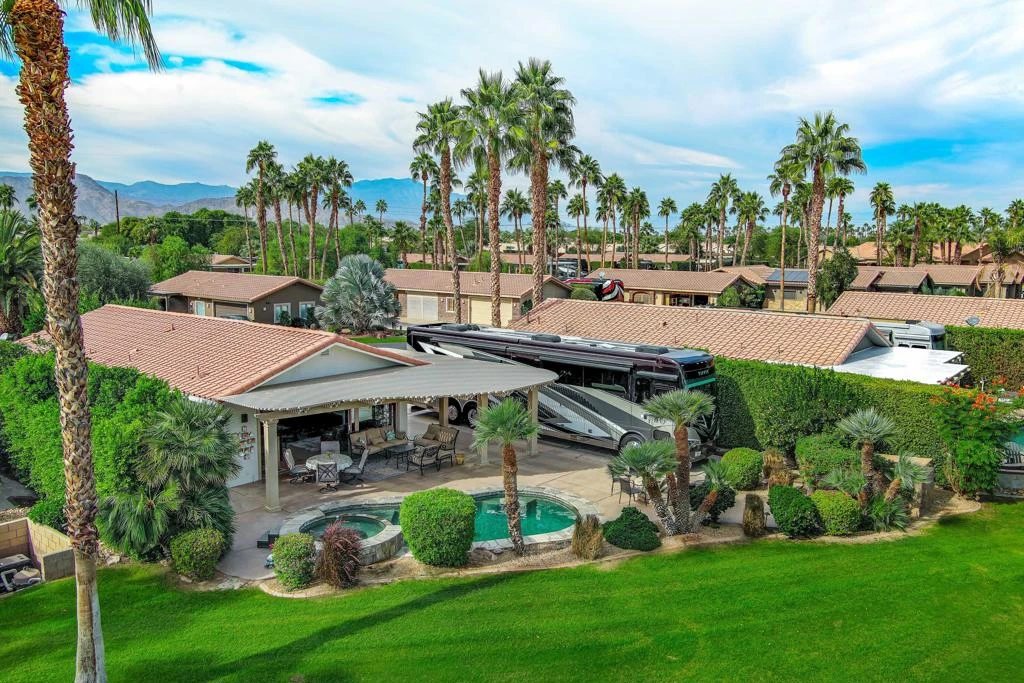#53 DESERT SHORES RESORTLuxury Motorcoach Resort.Ownership requires Class A motorhome with minimum length of 36'Nice motorcoach property with RV parking space, a Coachside Villa on extra deep lot perched over a gorgeous lake with night-lighted fountains.Freshly painted inside and out this eastern backyard property includes a Coachside Villa with Great Room/Kitchen, Retreat with Bathroom and Walk-In Closet.Outside offers a pool, spa, natural gas firepit, expansive pergola with electric heaters, and a BBQ station.Association includes clubhouse, tennis, pickleball, fitness center, community pool & spa, social activities, 24 hour, guard gated with high-tech perimeter security, trailer storage area, doggie park, front yard landscape maintenance & brand new super-speed FIOS internet