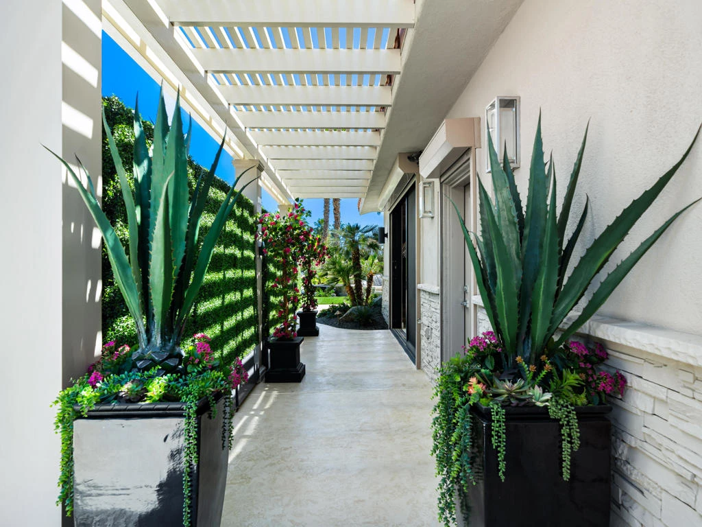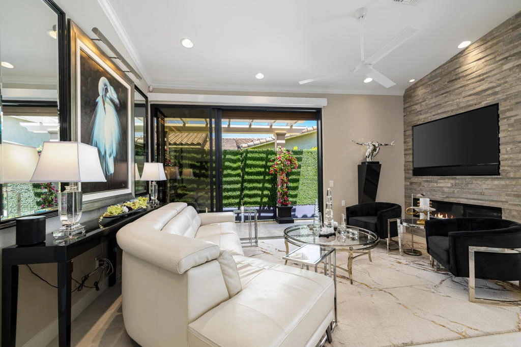 #57 DESERT SHORES RESORTGorgeous interior remodel on contemporary side.Eastern backyard has a large spa with sheer descent falls and fire features!Garage/Great Room-Kitchen/ Retreat with Bathroom.Common area includes clubhouse, pool, spa, fitness, tennis, pickleball.