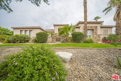 Experience the ultimate desert retreat at The Orchard Estates! This stunning 6-bedroom + 5-bathroom estate sits on a sprawling .32-acre lot, offered fully turnkey-furnished for an effortless transition to luxury living! The heart of the home is a resort-style backyard designed for entertaining: a Pebble-Tec saltwater pool and waterfall spa, dual tanning shelves, firepit, and a high-fidelity 16-speaker Sonos system. Plus, beautifully manicured landscape including lemon, orange, and lime fruit trees. Inside, the 2,995 sq. ft. open-concept floor plan features soaring vaulted ceilings, wide-plank wood tile, and a gourmet kitchen equipped with GE appliances and double ovens. Dining area plus separate breakfast room with sliding glass doors to the beautiful outdoor space and barbecue. Primary bedroom and ensuite with dual vanity, standing shower, soaking tub, walk-in closet, and lockable ''owners closet''. Second primary bedroom with ensuite, 3 additional bedrooms, and 4th bathroom with dual vanity and lighted defogging mirrors. Unique highlights include a private-entry casita with its own fireplace courtyard and a professionally converted, climate-controlled game room. Low $235 HOA and a rare permit for five short-term rentals annually, this is both a premier sanctuary and a high-yield investment opportunity. A one-of-a-kind home in The Orchard Estates!