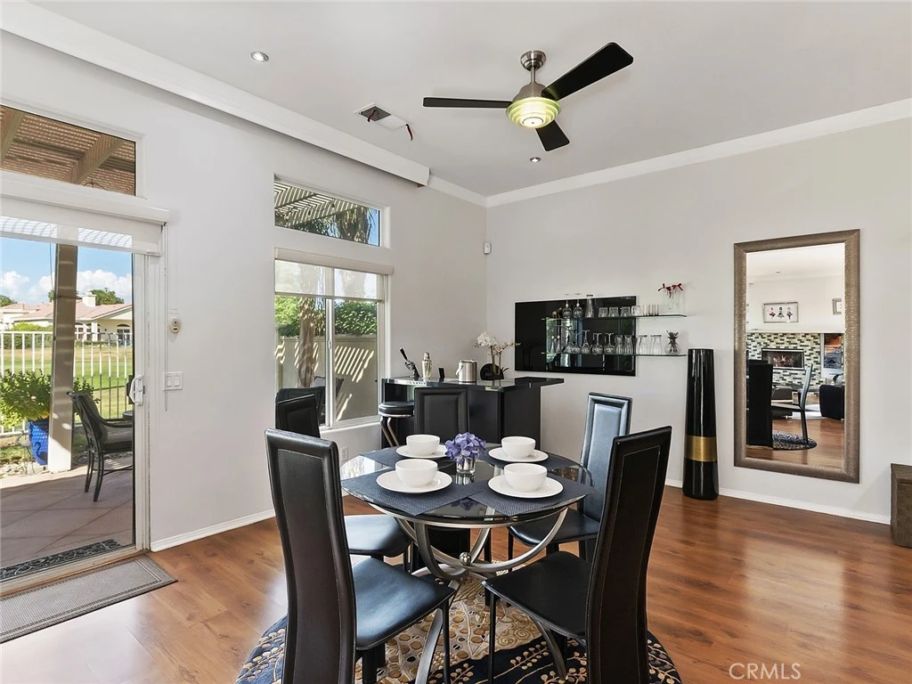 Escape to this beautifully furnished seasonal lease at Indian Palms Country Club in Indio! This 3-bedroom, 2-bathroom, 1,833 square foot home is fully turnkey, located on the 8th hole of the Mountain Course. Simply bring your suitcase and golf clubs to enjoy resort-style living with access to a variety of amenities. The home has been tastefully remodeled with a modern touch, featuring laminate wood-look and ceramic tile floors in the common areas, crown molding, and a mosaic glass fireplace. The great room, complete with a wet bar, opens to dual patios, one of which offers breathtaking west-facing views of the golf course—perfect for relaxing or entertaining. The gourmet kitchen is equipped with upgraded appliances and stylish cabinetry. The private primary suite is a tranquil retreat with a luxurious primary bath and ample closet space. The second bedroom includes a cozy sitting area, while the updated guest bathroom and bonus room offer additional comfort. Experience desert living at its finest in this gorgeous, fully furnished home!