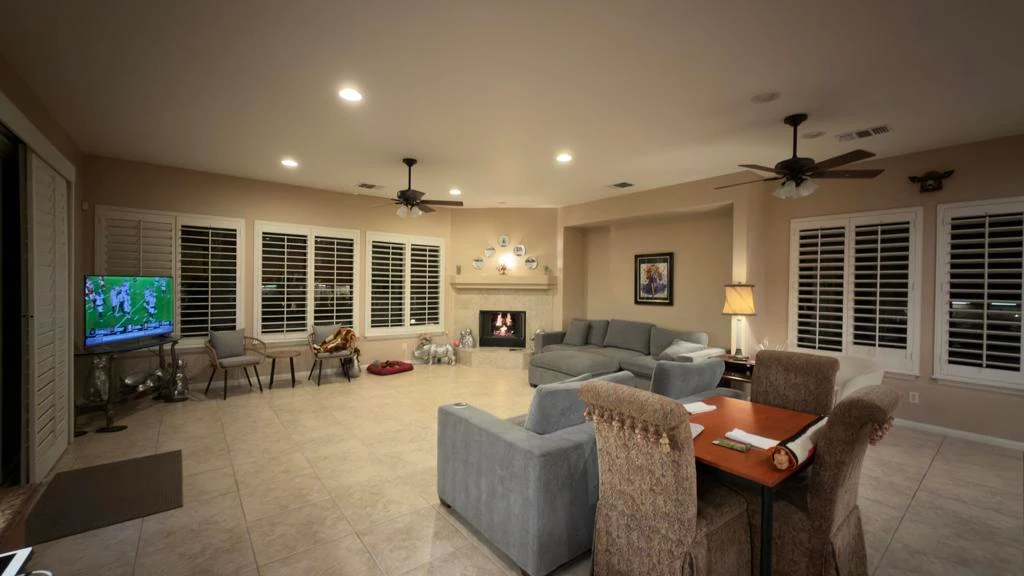 Located in the gated community of Desert River Estates, this furnished 4 bedroom, 4 bath single-level home offers approx. 3,468 sq ft of living space on a rare 21,780 sq ft (approx. 1/2 acre) lot with exceptional privacy and no homes behind you. Ideally positioned between Indio and La Quinta and located within about a mile of the Coachella and Stagecoach festival grounds, the home blends comfort, scale and location in a way that works beautifully as a primary residence, desert retreat or entertainer's getaway. The east-facing orientation minimizes afternoon heat and creates a softer, more enjoyable year-round outdoor environment. The expansive lot includes desert landscaping, a 3-car garage and generous behind-the-wall parking suitable for additional vehicles or an RV, provided it remains screened from street view.The backyard is the heart of the property a true resort environment designed by a professional pool builder as his personal showpiece. The custom pool and spa feature multiple waterfalls, fire elements, bubblers, a dedicated swim-in-place system powered by multiple pumps, a rare in-floor self-cleaning system and extensive LED lighting that transforms the space at night. In addition to a traditional heater, the pool includes a heat-pump cooling system that keeps water at a refreshing temperature during the hot summer months. Outdoor living expands across a large covered patio with ceiling fans, a built-in BBQ/outdoor kitchen, multiple lounging zones, 12 mature date palms, lush landscaping including over 10 Fruit Bearing Trees, Cumquat, Fig, Guava, Pomegranate, Greapfruit, OrangeInside, the home offers a spacious great room with fireplace that opens to an island kitchen, creating the ideal hub for gatherings. Three ensuite guest bedrooms are located on one side of the home, while the private primary suite sits on the opposite side with a soaking tub, walk-in shower, dual vanities, a large walk-in closet and direct access to the rear patio and pool. Desert River Estates is known for its quiet elegance, wide streets, beautifully maintained landscaping and all half-acre lots, with limited turnover. Other amenities, putting green, Automatic Gate for behind the wall parking, Outdoor Kitchen with a Barbecue and Putting GreenFor buyers seeking a refined desert lifestyle, this home delivers space, privacy, craftsmanship and a resort-caliber backyard rarely found at this price point, all close to dining, golf, shopping and the valley's premier ev