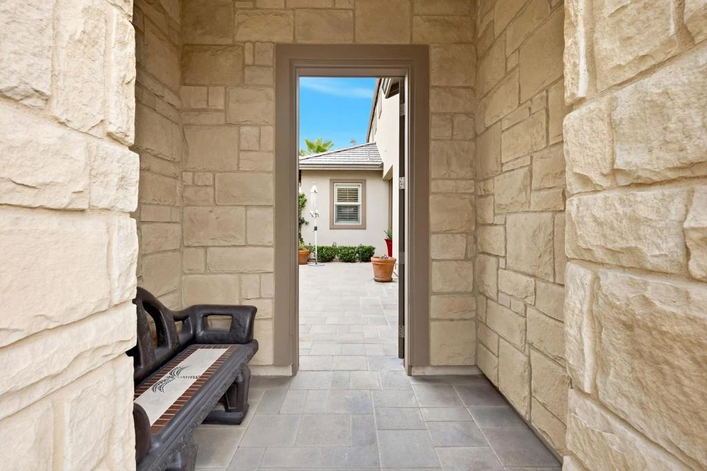 One of a kind luxury home in Trilogy at The Polo Club in La Quinta offering 2,973 square feet, 3 bedrooms, 3.5 baths, a private casita, and an upstairs retreat ideal for guests or multigenerational living. This upgraded residence shows like a model and delivers the ultimate desert lifestyle.The chef's kitchen features a 6 burner cooktop, designer hood, built in oven and microwave, generous prep space, and opens to a spacious great room with a rolling glass wall for seamless indoor outdoor living. Natural light and open concept design create an ideal space for entertaining.The oversized backyard includes a covered patio and outdoor fireplace, perfect for evenings under the desert sky. A dramatic front courtyard entry with fountain adds privacy and architectural impact.The two room casita with wet bar and private courtyard entrance offers flexibility for guests or home office use. Upstairs retreat functions like a second casita with oversized bedroom, private great room, full bath, and large storage closet.Additional features include a dedicated den, smart space with dual workstations, laundry room, and a two car garage with room for golf cart storage.Optional Polo Club membership available with transfer fee provides access to resort style amenities including fitness center, pickleball, tennis, resort and lap pools, indoor golf simulator, billiards, artisan studio, banquet facilities, and active social calendar.Experience upgraded living in one of La Quinta's most desirable active adult communities.