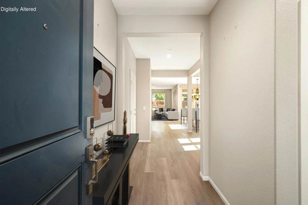 Nestled behind the prestigious gates of Trilogy Polo Club, this elevated Muros Resort Collection residence blends modern luxury with effortless desert living, showcasing plank tile flooring, upgraded white soft‑close cabinetry, custom interior doors, and designer touches throughout its open‑concept layout. The entertainer's kitchen shines with stainless steel appliances, a 5‑burner gas range, prep island with bar seating, granite slab surfaces, a Frigidaire refrigerator/freezer, custom subway tile backsplash, and a sleek single‑basin sink. The spa‑inspired primary suite features an oversized shower with bench seating, dual undermount sinks, and upgraded fixtures, while the open office area offers upper and lower cabinetry plus dual desk spaces ideal for projects or productivity. Outside, an extended wrap‑around paver patio with multiple seating areas creates the perfect backdrop for sunrise coffees or sunset wine. Additional highlights include a two‑car garage with four overhead storage racks and access to world‑class amenities--tennis and pickleball courts, fitness center, resort and lap pools, poker and billiards room, artisan and culinary studios, putting green, bocce, oversized chess, picnic areas, and more.