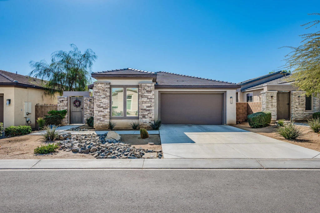 Welcome to The Gallery at Indian Springs! Tucked within an exclusive enclave of just 25 homes, this beautifully upgraded 3-bedroom, 3-bath residence blends comfort, style, and signature desert living. Flooded with natural light, the open-concept design features a spacious great room perfect for gatherings, highlighted by expansive sliding glass doors that lead to a private, south-facing patio with stunning golf course and mountain views.The chef's kitchen is sure to impress, offering stainless steel appliances, a generous center island, and abundant cabinetry. Throughout the home, enjoy thoughtful touches such as custom shutters, designer window treatments, luxury vinyl flooring, and plush carpeting.The primary suite serves as a peaceful retreat with direct patio access, a walk-in closet, and bathroom with dual vanities and a walk-in shower. Two inviting guest bedrooms provide comfort and privacy--one with its own ensuite bath and the other conveniently located near a full guest bathroom. Additional features include a well-appointed laundry room with storage and a sink, a spacious two-car garage, and a versatile golf cart garage--ideal for extra storage, a creative workspace, or of course, your golf cart. Residents of The Gallery enjoy a lush greenbelt, a dedicated dog park, and a tranquil, well-maintained community setting. Located in the Desert Sands Unified School District and close to premier golf, shopping, and world-class dining, this home offers a lifestyle as exceptional as its surroundings. Don't miss your chance to own this desert oasis!