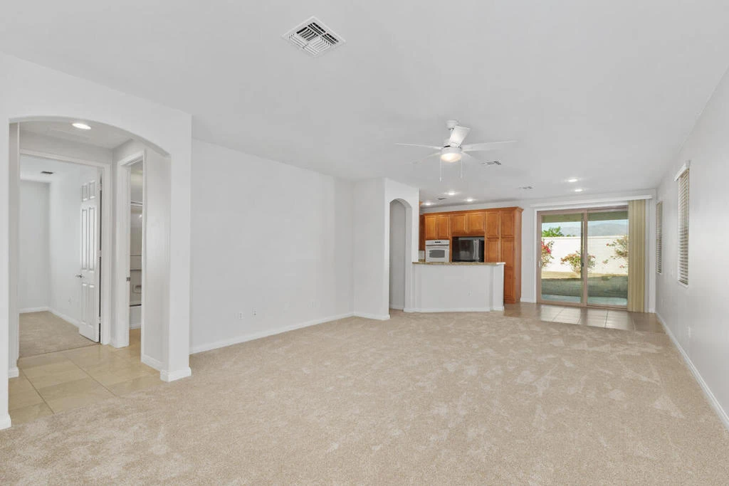 Huge Price Reduction-Great investment property opportunity! Move-in ready San Ysidro model: 1,463 sq ft, 2 beds, 2 baths plus den with new carpet, paint, ceiling fans, dishwasher, and a newer refrigerator. Nearly $15,000 in recent improvements, including inspections and repairs. North-facing backyard offers shade and partial mountain views. With all these recent upgrades and the prime location in a vibrant, active adult community, this home provides the perfect blend of comfort and convenience for enjoying the desert lifestyle. Whether you're looking to unwind in the shaded backyard, connect with neighbors through a variety of social clubs, or take advantage of world-class amenities just steps from your door, this property is an ideal choice for those seeking both relaxation and recreation in the heart of the Coachella Valley.Located in Sun City Shadow Hills, a premier 55+ community featuring two clubhouses, three pools (one indoor), two fitness centers, golf courses, pickleball, tennis, bocce, billiards, and over 50 clubs. This is your opportunity, see it today!