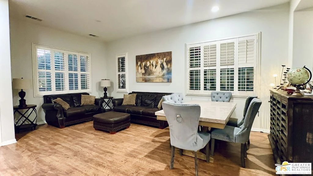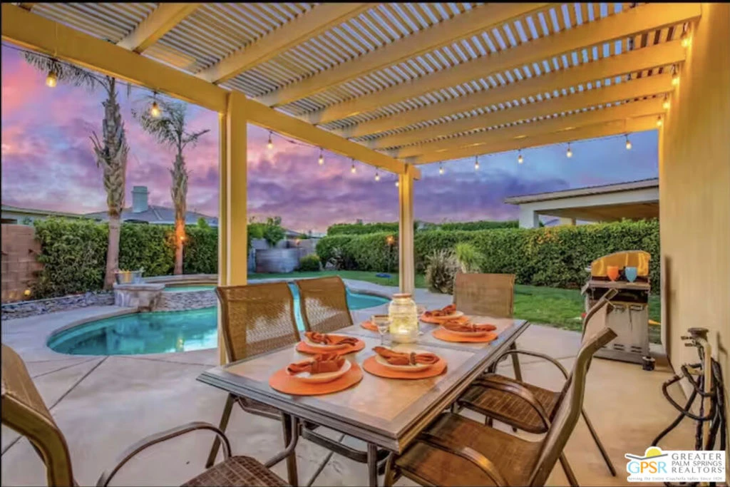 Experience the best of desert living in this fully furnished 3-bedroom, 2-bath Indio pool home perfect as a primary residence, vacation retreat, or short-term rental. Situated on a quiet cul-de-sac with no HOA, this turnkey property offers a bright, open floor plan ideal for entertaining. Enjoy a spacious living area, sunlit kitchen with plenty of counter space, and a dining nook that opens seamlessly to the backyard. The primary suite features a walk-in closet and private en-suite bath, while two additional bedrooms provide space for guests, an office, or a den. Outside, unwind in your private oasis with a sparkling pool and spa surrounded by lush landscaping and space for outdoor dining and lounging under the stars. With furniture included, this home is move-in ready and Airbnb/VRBO-friendly. Located minutes from Coachella and Stagecoach festivals, PGA golf courses, shopping, dining, and the best of Greater Palm Springs, this desert gem offers style, comfort, and income potential in one perfect package. Schedule your private showing today!