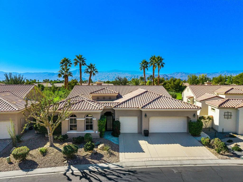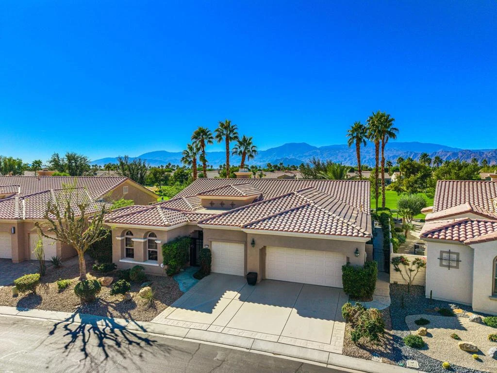 A Tropical Masterpiece in Sun City Shadow Hills!! Discover a breathtaking designer renovation that redefines desert luxury. This reimagined La Paz floor plan offers nearly 3,000 sq ft of resort-inspired living, positioned south-facing on the championship golf course with panoramic mountain and fairway views.Beyond the custom wrought-iron entry gate, a lush tropical courtyard with a soothing rock water feature welcomes you into a tranquil oasis--complete with a private Guest Casita. Inside, a dramatic glass entry door opens to an interior of natural textures, warm wood tones, and curated finishes inspired by upscale island resorts.At the heart of the home lies a dramatic chef's kitchen remodel--a true showpiece blending function and artistry. Striking black cabinetry, designer lighting, exotic stone surfaces, and a generous island with seating create a seamless flow for entertaining. Every detail was custom-designed to evoke the feeling of a tropical retreat while delivering top-tier modern convenience.The great room captures breathtaking mountain and pool views through picture windows and is anchored by a sleek black-granite fireplace and custom built-ins. The formal dining area complements the kitchen's island elegance, perfect for intimate dinners or large gatherings.A richly paneled den with built-in cabinetry provides a warm, inviting retreat, while the primary suite offers a spa-like sanctuary with bespoke finishes.Outdoors, experience the pinnacle of resort living with a sparkling pool and three cascading waterfalls, a raised spa, lava-rock firepit, and an art mosaic wall by a renowned coastal artist--all framed by glowing sunsets and the majestic Santa Rosa Mountains.Originally built in 2006 and transformed through a million-dollar designer renovation, this home embodies the essence of modern desert elegance within the guard-gated active-adult community of Sun City Shadow Hills--just minutes from Palm Springs, world-class dining, shopping, and entertainment.Offered for sale and seasonal lease, this exceptional residence invites the discerning buyer to experience the ultimate in luxury desert living.