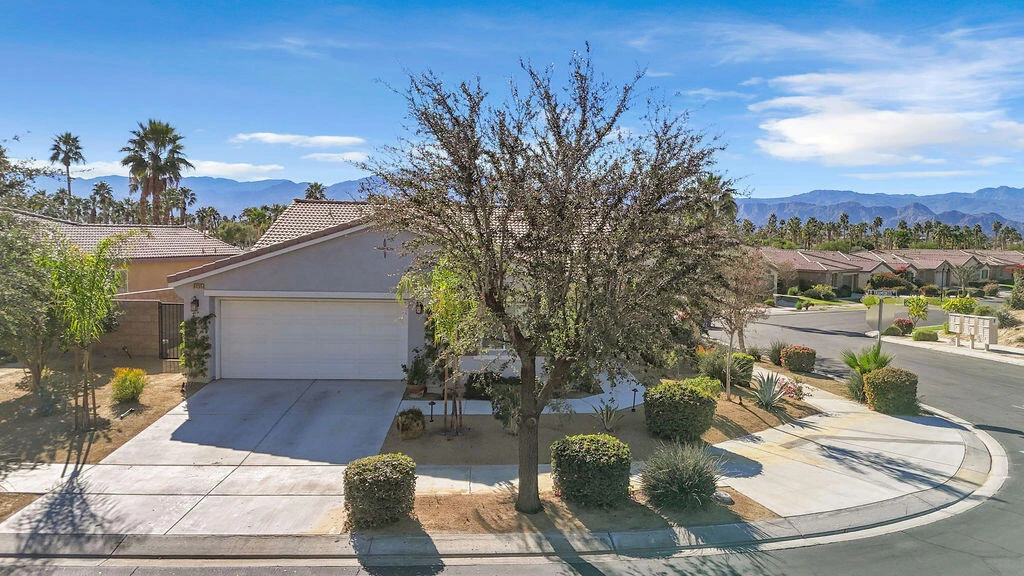 Beautifully updated home on a premium corner lot featuring new, stylish, low-maintenance front landscaping with accent lighting. The exterior of the house was repainted in an updated color scheme. The interior features tile flooring in all but the bedrooms and energy-efficient LED lighting throughout. This smart home offers integrated lighting, TV, audio controls, and a smart front door lock for modern convenience. Move-in ready, this home features 4 bedrooms, 2 bathrooms, and a spacious great room. The kitchen is designed for both functionality and entertaining, offering granite countertops, a gas range, a spacious pantry and center island, and a formal dining area just off the kitchen. The expansive primary suite is a true retreat, complete with a dual-sink vanity, separate soaking tub and shower, and an oversized walk-in closet. Three additional bedrooms are thoughtfully positioned away from the primary suite for added privacy, with a hallway bath ideal for guests. The garage is equipped with a mini-split system and a Tesla charger. Located in the guard-gated, picturesque community of Terra Lago, residents enjoy access to a 22-acre recreational lake, scenic walking paths, and a clubhouse featuring a large fitness center, pool, spa, playground, and catch-and-release fishing, with approved boating on the lake. Community parks add to the resort-style lifestyle. Terra Lago allows short-term rentals and offers a prime location near hiking, shopping, dining, and entertainment, including Acrisure Arena and Fantasy Springs Casino, with easy freeway access to surrounding desert cities. Golf enthusiasts will appreciate the adjacent Terra Lago Golf Club. HOA dues include basic cable FIOS TV and Wi-Fi internet. Come see this exceptional home, you won't be disappointed!