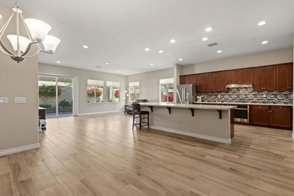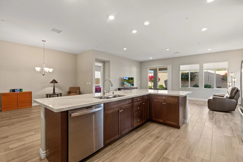 Welcome to resort-style living in the award-winning Four Seasons at Terra Lago, a premier 55+ active adult community in the heart of the Coachella Valley. This impeccable 2019-built Mecca Hills floor plan offers 2,152 square feet of single-story living with 2 bedrooms, 2.5 bathrooms, and a versatile flex room perfect for a home office, fitness studio, or creative retreat.The open-concept layout flows effortlessly from the gourmet kitchen with its generous island to sun-filled living and dining spaces framed by stunning mountain views. The spacious primary suite accommodates a king bed with ease, while the spa-inspired ensuite features a large walk-in shower, dual vanities, and ample closet space. A private guest suite with dedicated bathroom ensures comfort for visitors.Beyond your front door, The Lodge, a 22,000 square-foot clubhouse, serves as the heart of the community with a state-of-the-art fitness center, indoor and outdoor pools, tennis and pickleball courts, bocce ball, a ballroom, library, bistro, and on-site salon and massage services. Clubs range from book discussions to watercolor painting, with social activities filling every day of the week.The lifestyle here is unmatched. Named the City of Festivals, Indio attracts more than 1 million visitors each year for world-famous events like Coachella and Stagecoach. The nearby Acrisure Arena hosts top concerts, professional hockey, and premier entertainment year-round. Golf enthusiasts will find paradise with over 100 courses throughout the valley, while nature lovers can explore Joshua Tree National Park, the Indian Canyons, and desert hiking trails just minutes away. Enjoy polo matches, the Living Desert Zoo, legendary date shakes at Shields Date Garden, or gaming at Fantasy Springs Resort Casino.Convenience abounds with quick access to Interstate 10, shopping centers nearby, Palm Springs just 20 miles away, and the international airport only 30 miles out. The upscale boutiques of El Paseo and endless dining options complete the picture.This is more than a home--it's your invitation to embrace an active, connected lifestyle where every day feels like vacation.