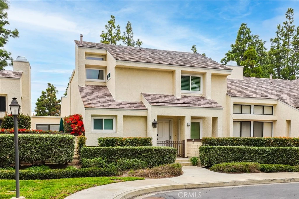 Unwind in the peaceful comfort of 11 Chardonnay, a charming 3 bed, 2.5 bath, 1,600 sqft sanctuary nestled within the heart of Irvine's coveted Woodbridge community. Step inside your private gated entry to the spacious great room, with real brick fireplace and bathed in warm natural sunlight from a massive skylight. Designer paint, white oak luxury vinyl plank flooring, contemporary recessed lighting, plantation shutters, and sleek new Emtek satin brass hardware throughout. Generously sized kitchen has designer sage cabinetry, satin brass pull-down faucet, and private breakfast nook with direct patio access. Downstairs bedroom with custom built-ins makes a fantastic home office, or guest bedroom. Two oversized en-suite bedrooms upstairs feature generous closet space, and private bathrooms. Step outside to your private enclosed patio, ideal for relaxing or entertaining. Detached 2 Car Garage offers ample parking for large vehicles and abundant storage with deep, built-in shelving. Community offers plenty of guest parking for friends and family. Enjoy resort-style living with access to famous Woodbridge community amenities, including 22 pools, 2 beach clubs, tennis courts, lakes, fire pits, and leasable community centers. Top-rated schools, shopping, coffee, community events, and entertainment are all within walking distance. Has Central A/C. Ecobee Thermostat. Smart Doorlock, Smart Doorbell. Appliances, including new Microwave, Dishwasher, and Dryer, full size laundry, and trash included. Do not wait, this unit won't last!