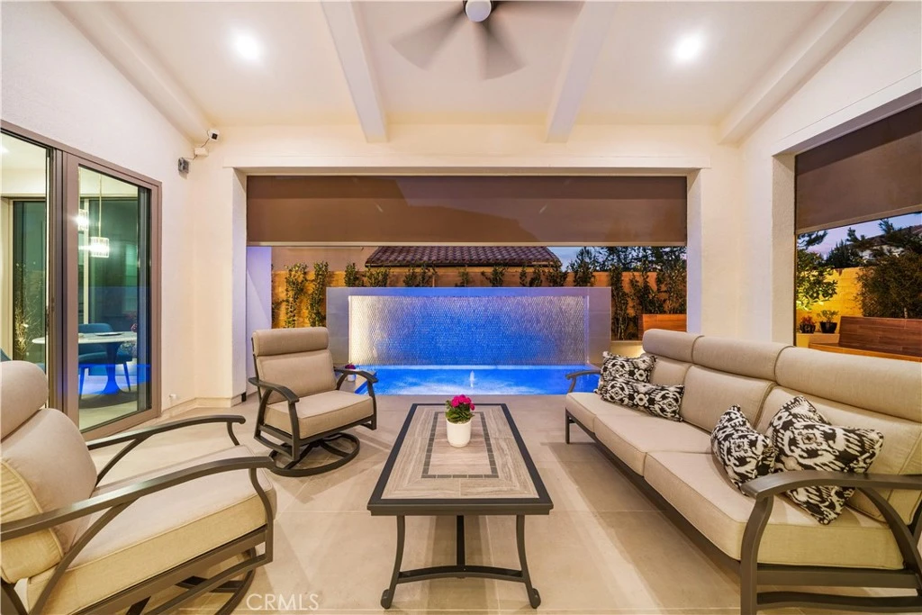 Corner Lot | Over $700K in Upgrades — Surpassing the Model Home | Rare Ravello 3X floor plan with Permitted Expansions Located on a premium corner lot in the prestigious 24-hour guard-gated community of The Groves at Orchard Hills, this home offers enhanced privacy and abundant natural light. This extensively customized Ravello 3X residence showcases over $700K in luxury upgrades along with rare permitted expansions, creating a unique floor plan within the community. Designed with an elegant open-concept layout, the residence features Euro oak engineered hardwood flooring, recessed lighting, crown molding, custom paint, and designer wall sconces. The great room boasts soaring ceilings with decorative beams, sliding glass doors, and a statement fireplace wrapped in large-format tile with custom built-in cabinetry. The chef’s kitchen features floor-to-ceiling illuminated glass cabinetry, premium Wolf appliances, and a custom Sub-Zero refrigerator with wine display and walk-in pantry. A Marbolis Niaca leathered stone waterfall island with matching backsplash anchors the space. The kitchen flows into the formal dining area and a bright breakfast room surrounded by glass sliding doors. Motorized retractable shades provide privacy and sun control. A prep kitchen offers flexibility for cooking. The main level also includes a guest suite, powder room, and an office with sliding doors. A glass staircase leads to the second level featuring a spacious loft and three additional bedroom suites. Each bedroom offers its own highly upgraded en-suite bathroom with elegant wainscoting and designer finishes. One secondary bedroom includes a large private balcony overlooking the orchard views. The primary suite includes its own balcony and a spa-inspired bathroom finished with full marble walls and flooring, dual vanities, custom cabinetry, an oversized shower, soaking tub, TOTO Washlet toilet, and a California Closets walk-in wardrobe. The backyard is designed for outdoor living and entertaining, featuring a California Room with motorized shades, waterfall feature, fire pit seating area, private putting green with party lights. Additional highlights include paid off solar, upgraded insulation, built-in speakers, whole-house water softener and drinking water filtration, custom paver driveway, epoxy garage flooring, and a Tesla EV charger. Residents enjoy resort-style amenities including pools, parks, clubhouses, scenic trails, and access to top-rated schools.