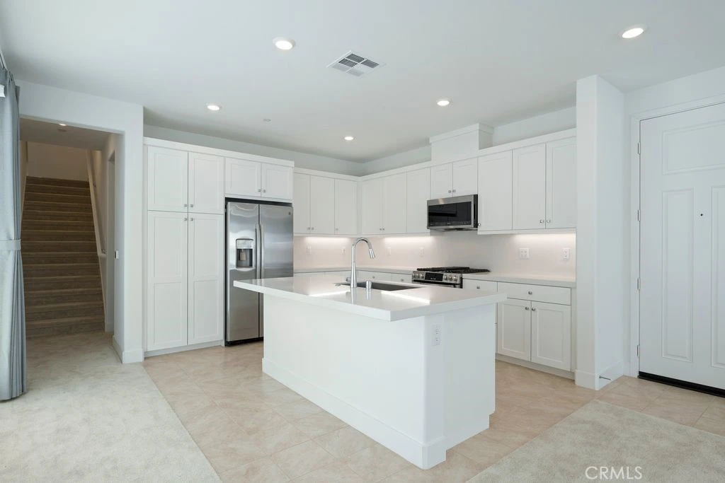 Beautiful upgraded three-level home located in the Great Park community built by Lennar. This home offers approximately 2,914 sqft of living space, featuring 4 bedrooms and 3.5 bathrooms with a functional bonus room on the third floor. The main level includes a guest bedroom and a full bathroom, ideal for guests or multi-generational living. The living room shows an open-concept living space connected with a gourmet kitchen and dining area. The kitchen is equipped with quartz countertops, a large center island, and stainless steel appliances, which is perfect for your everyday living. The master bedroom on the second floor features a spacious layout with a comfortable bathroom and dual vanities. There are two additional guest bedrooms and a full shared bathroom. The third floor offers a bonus room with a private balcony and built-in bar, which is ideal for an entertainment and relaxation area. The residents enjoy access to Great Park's amenities, including pools, parks, and walking trails. Located near Woodbury Shopping Center, Irvine district schools, and major freeways. Solar paid off.