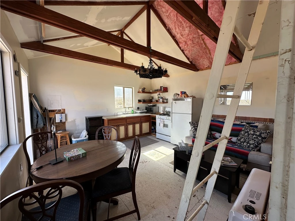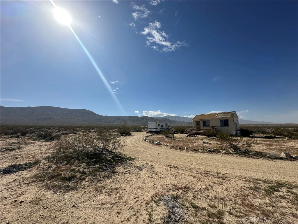 Get ready to be dazzled by this stunning off-grid retreat on 2.5 acres of pure paradise! Nestled in the breathtaking open landscapes of Johnson Valley, this property captures the magic that first drew people to the Hi-Desert! As you journey to your new escape, you'll find yourself surrounded by enchanting, endless desert vistas filled with vibrant cacti, creosote, majestic Joshua trees, and awe-inspiring mountains that create a perfect backdrop. As you arrive at the handcrafted gate, a wave of tranquility washes over you, whisking away the hustle and bustle of everyday life. Step into your private oasis, where the cabin’s secluded position offers breathtaking blue skies in every direction. Inside, you’ll discover a spacious and inviting layout, ready for your personal touch! The cabin features a stylish vanity, modern kitchen sink, oven, refrigerator, and tasteful shelving, all enhanced by exposed beams and a unique chandelier that adds flair to the space. Sunlight floods through well-placed windows, allowing you to soak in the panoramic views while enjoying meals at your dining table. the thoughtfully designed floor plan is utilized, leading you to a generously sized bedroom adorned with more exposed beams, a strategically positioned window for stunning views, and a bathroom complete with a vanity, commode, and a walk-in shower. The property is equipped with a wall heater designed for a 1200 square-foot house, ensuring cozy warmth during cooler nights. For those warm desert days, the swamp cooler/evaporative cooler, suitable for a 1400 square-foot space, provides efficient cooling with exceptional temperature control, making your living experience both comfortable and enjoyable year-round. Step outside onto the expansive wood deck, perfect for al fresco dining, lively barbecues, or simply unwinding as you take in a landscape so captivating, it rivals a masterpiece. Plus, the property includes a standalone RV, ideally suited for hosting guests or adventurers! Each morning, wake up to breathtaking sunrises that paint the sky in vibrant hues, and in the evenings, indulge in some of the best stargazing you’ve ever experienced. With government land bordering three sides, this secluded sanctuary offers the ultimate escape from the ordinary! Additional highlights include a full solar system for energy-efficient living, hauled water tanks, a cozy loft for extra guests,an unbeatable location just minutes from the world-renowned King of the Hammers grounds.