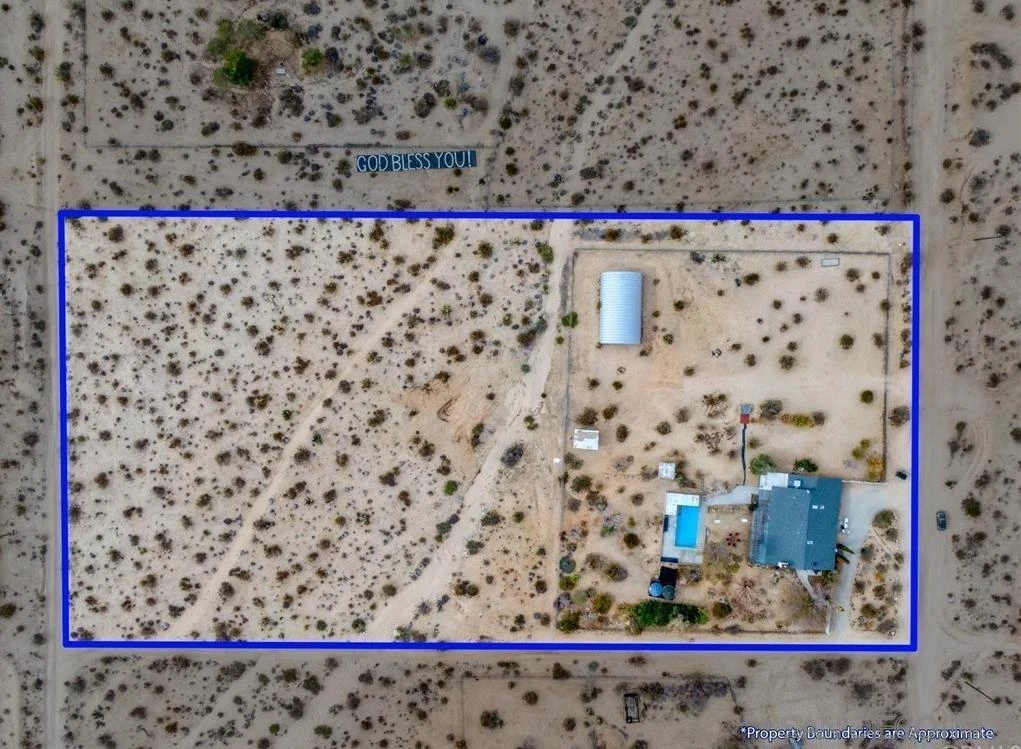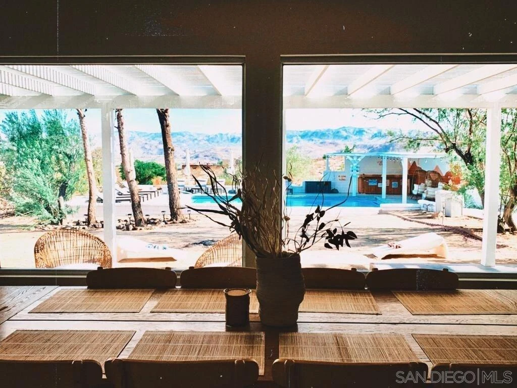 Fully remodeled 3BD/2BA + bonus room on 5 private acres with expansive desert and mountain views. Flexible for personal use, second home, or short-term rental. Renovated in 2022 with new roof, updated electrical, luxury vinyl plank flooring, fresh interior/exterior paint, upgraded appliances, new water heater, pool heater, and wireless pool controls. Open-concept living, dining, and kitchen. Spacious primary suite with dual vanities and private patio access. Outdoor features include heated pool, spa, fire pit, bocce ball court, and covered patio—ideal for enjoying Joshua Tree’s natural setting. Versatile Quonset structure perfect for studio, wellness, or creative use. Attached garage with EV charger. Offered fully furnished ($50K+ in furnishings included). Move-in ready. Previously operated as a short-term rental, with the current owner utilizing the property to help offset W-2 income through short-term rental use (buyer to verify with CPA).