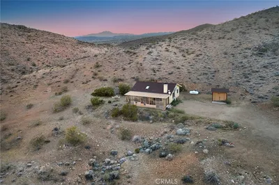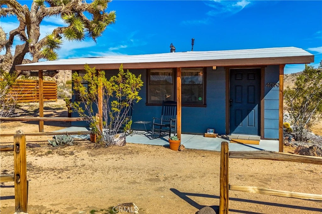 Welcome to The Moon Cabin — an Apartment Therapy featured desert retreat with over 450 five-star reviews as a short-term rental, standout design and proven rental appeal. Set on nearly two flat acres at the base of Bunker Mountain, this 1959 Jack Rabbit Homesteader blends mid-century charm with thoughtful modern upgrades. Located just 10 minutes from the entrance to Joshua Tree National Park and close to local dining, shops, and art spaces, it’s perfectly positioned to enjoy the best of the high desert. Inside, the one-bedroom, one-bath home features custom details throughout: hand-built raw edge shelving, sliding barn doors, designer lighting, and a freestanding mid-century wood-burning fireplace that anchors the open living area. The kitchen is both stylish and functional, with quartz countertops, floating shelves, and seamless flow into the main living space. The nearly two-acre lot offers privacy, natural beauty, and room to expand. Native flora, boulder formations, and unobstructed views create a stunning backdrop for outdoor living. A bocce court adds a fun and unique touch for guests or gatherings. The Moon Cabin has a strong track record and future potential—whether you're looking for a personal escape, a creative live/work home, or a part-time rental property with character and income potential.