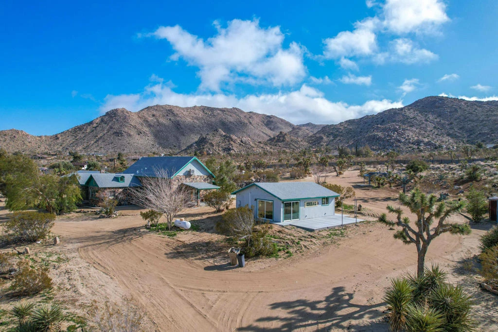 Welcome to the best kept secret in Joshua Tree, your own gated and fully fenced private oasis on 10 acres. This rare offering includes two separate 5-acre parcels, featuring two beautifully remodeled homes and a charming casita, all thoughtfully updated in 2022.In total, this extraordinary property offers 8 bedrooms + 1 loft + 5.5 bathrooms across three beautifully remodeled living spaces, providing versatile options for personal use, hosting, or income potential. This property is Ranch Ready! with 10 acres of open land and access to nearby riding trails, this property is perfect for horses, barns, or a custom equestrian setup. Plenty of space to build your dream ranch!Main House - known as the Mainstay- 3 bedrooms, 1 loft, and 2 full bathrooms, a state of the art kitchen and moreSecond Home - known as the Cowgirl- 4 bedrooms, 2 full bathrooms, and a half bathStudio Casita- known as the quiet Farm boy- 1-bedroom studio with Murphy bed and1 full bathroomAdditional highlights include leveled parking for up to 25 vehicles, designated walkways to each home, a large flat area ideal for yoga sessions, outdoor dining, or events, and a built-in fire pit for cozy evenings under the stars. Each structure features updated electrical panels prepped for solar installation, and the entire property is enclosed with 6-foot privacy fence, creating a secure and serene environment.Set amongst ancient boulders, iconic Joshua Trees, and surrounded by rocky hills, this serene and private property offers breathtaking views, vibrant sunrises, glowing sunsets, and star-filled night skies. To top it all off, there is 20 acres of protected BLM land in front of the property that can not be built on. Honestly, the pictures and videos do not do it justice, this property is a must see to truly appreciate! This is a prime location just minutes from the Joshua Tree National Park, JT Village, restaurants, shopping, art galleries, schools, and medical facilities. Enjoy unmatched hiking, climbing, and nature experiences right at your doorstep.With gated privacy, exceptional views in every direction, and no light pollution, this property is perfect for investors, creatives, nature-lovers, and those seeking peace, beauty, and possibility.Don't miss this unique chance to own one of Joshua Tree's most iconic and versatile properties. The possibilities are endless - make it your private retreat, family compound, ranch haven or high-demand short-term rental.