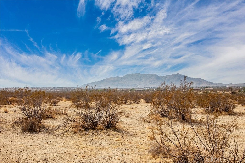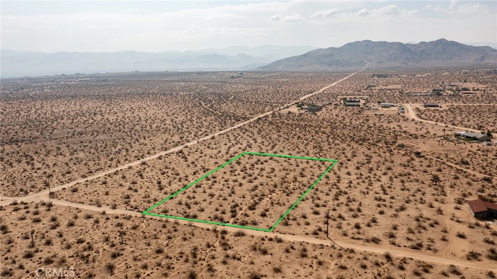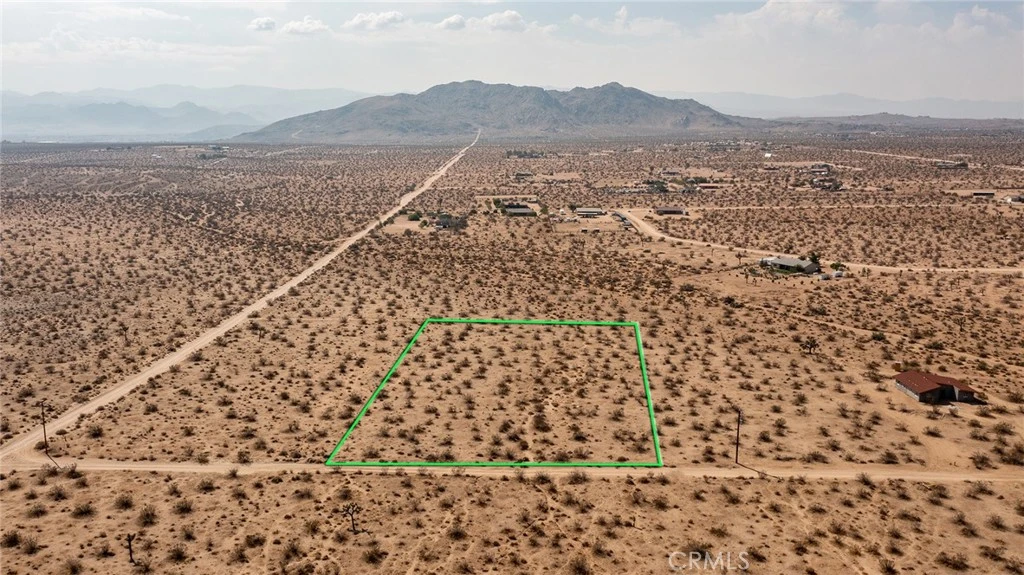 2.32-Acre Lot located in up-and-coming area of North Joshua Tree. Water & Electricity (utilities) nearby. Several new homes in the area. Great views from this elevated location. Rural. Surrounded by vast wilderness. Mountains nearby. Hiking. Fantastic sunrises to the east. NOTE: Green lines demarcating boundaries in pictures are approximate, as property has not been surveyed; street address is not official – do not use address or google map GPS to locate property. To find property, please locate with APN: 0599-501-08