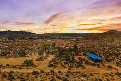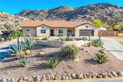 This custom built home with a park like yard features too many upgrades to list and is a must see! You?ll enjoy upscale, high desert, living in this three bedroom, three bathroom home with close proximity to downtown Joshua Tree! The spacious living room is warm and inviting with its south facing windows, warm tones and 12 foot ceilings. The well appointed kitchen is a kitchen any chef would love to have, ample cabinetry, striking black granite countertops, a large island with a built in gas cooktop and a private dining room which looks out to the front yard. The two guest bedrooms are well lit with cathedral ceilings, great closet space and laminate flooring. The primary suite is absolutely breathtaking, not only does it feature laminate flooring, two ceiling fans, recessed lighting, and crown molding, it?s also large enough to accommodate a full-size couch in the longe area. The private bathroom is just as impressive with its walk in tiled shower, separate soaking tub and separate vanity area. The storage in this home is absolutely endless from the built-in cabinet in the large laundry room, separate storage room, and in the incredible craft room. The two additional bathrooms, both feature single sink vanities, tile floors, and walk in showers. This home sits on a double lot providing enough room for RV parking as well as plenty of space to enjoying the backyard and side yards under the covered patios.