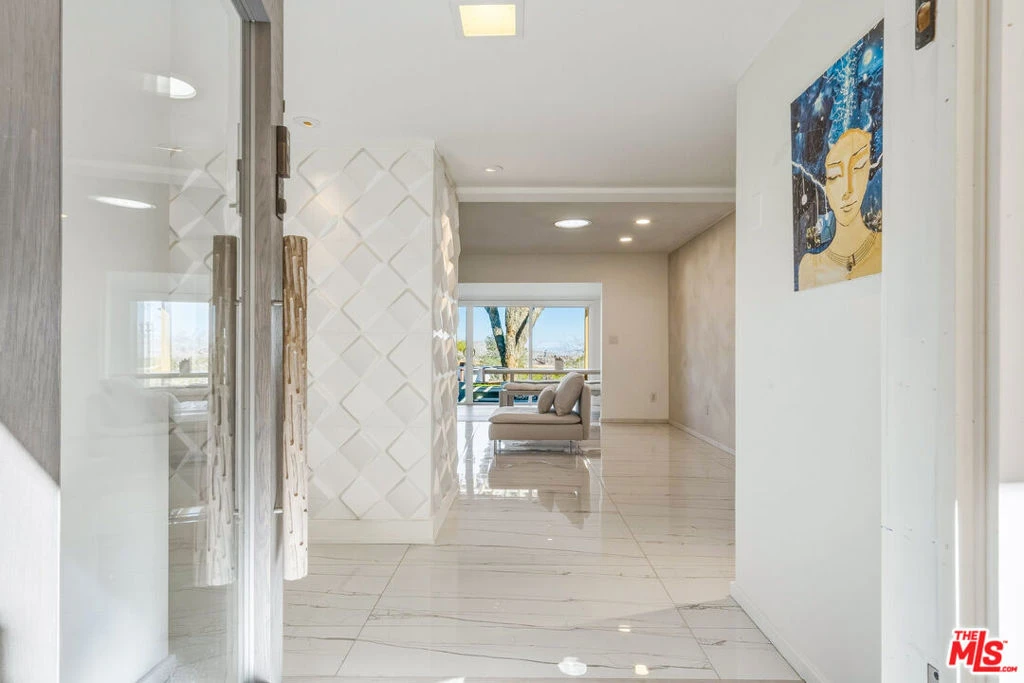 Set on a half-acre at the quiet end of a road in Friendly Hills, Desert Star offers a rare sense of peace at the edge of Joshua Tree National Park. At 3,500 feet in elevation, this Joshua Tree home enjoys cooler desert air, expansive night skies, and direct access to neighborhood hiking trails - an ideal setting for those seeking privacy, wildlife, and uninterrupted views. A collaboration between designer/builder Todd Patterson and Argentinian architect/artist Sol Sanchez, the property blends sculptural architecture with grounded, desert-informed materials. The main residence spans approximately 2,700 square feet complemented by a 160 square foot art studio. Six exterior patio spaces totaling 900 square feet extend the living experience outdoors including a shaded loggia garden, a sunken social patio, three reclaimed-beam pergolas, and a wood deck with two modern soaking tubs positioned for star-filled evenings. Inside, the layout features a pivot-door foyer entry, a generous great room anchored by a modern wood-burning stove, a formal living area, and a dedicated dining room. Three bedrooms each boast en-suite baths, alongside a well-placed powder room. The Japanese inspired kitchen is designed for both beauty and function, supported by a server and wine closet. Large format porcelain tile floors run through the main living areas, while new carpet softens the bedrooms. Systems are thoughtfully upgraded, including a 22-panel PV solar array, fiber optic internet, Nest thermostat, forced-air climate control, tankless LP water heater, water filtration system, new septic, and a SmartLock entry. A two-space carport, storage shed, dedicated future pool space, and an outdoor fire pit complete this Joshua Tree retreat.