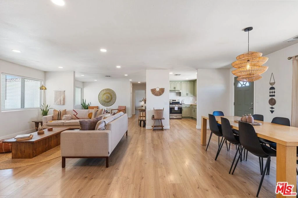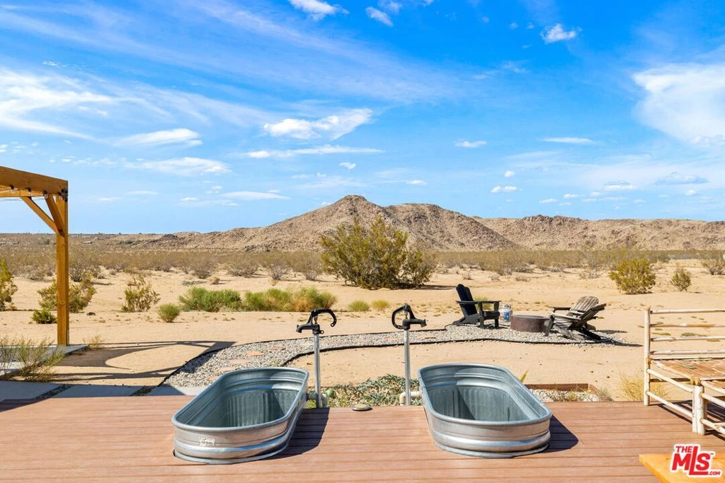 At the end of a fully paved road sits this 1,872 sq.ft. 3BD/2BA, fully furnished and recently remodeled Joshua Tree home. From either the front door or the direct access from the garage, one is greeted by a large open living space. Just off the dining area is the separate kitchen area with newer stainless-steel appliances and a large window to take in the mountain views. On one side of the home is the primary suite with a walk in closet and private bathroom. The other side of the home is rounded out by two additional bedrooms and a full-size bathroom. Step outside to the back where various entertainment hubs are aplenty. Enjoy gourmet meals from the built-in BBQ area under the gazebo. A hot tub and cold plunge baths provide aquatic activities in all climates. Finally, if you are looking to just relax, one can swing in the breeze on a hammock or get cozy around the firepit. Property has been used as a STR, and financials are available. Sitting on over two (2) acres of land, this home is perfect for those looking to balance privacy with easy access to the town's amenities. NOTE: For paved road access, please use Sunfair Road for access to Broadway. DO NOT use Sunburst Avenue.