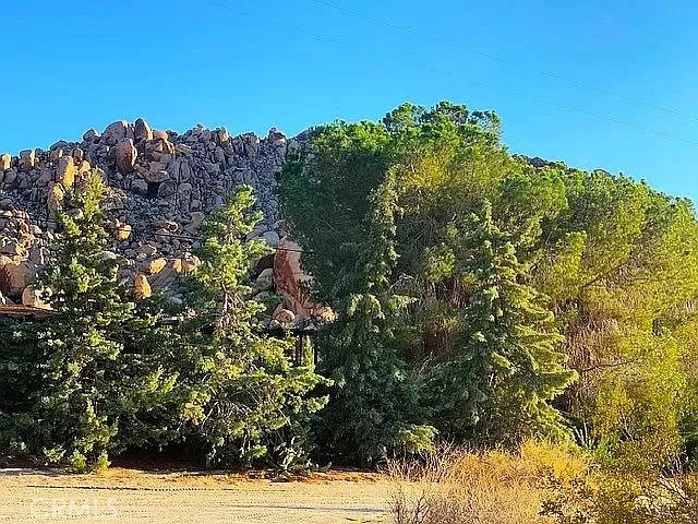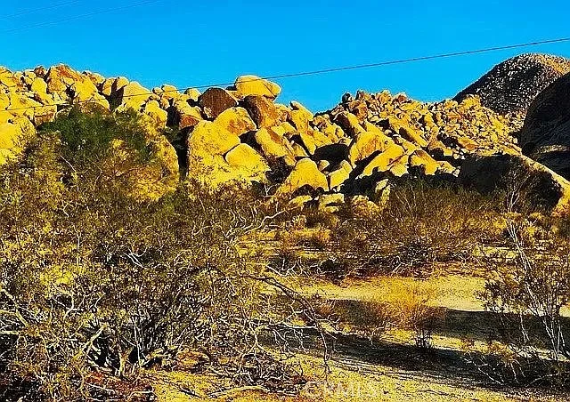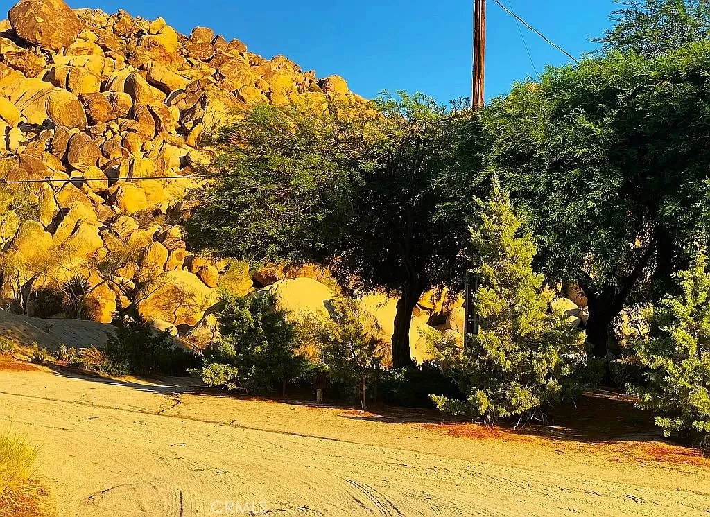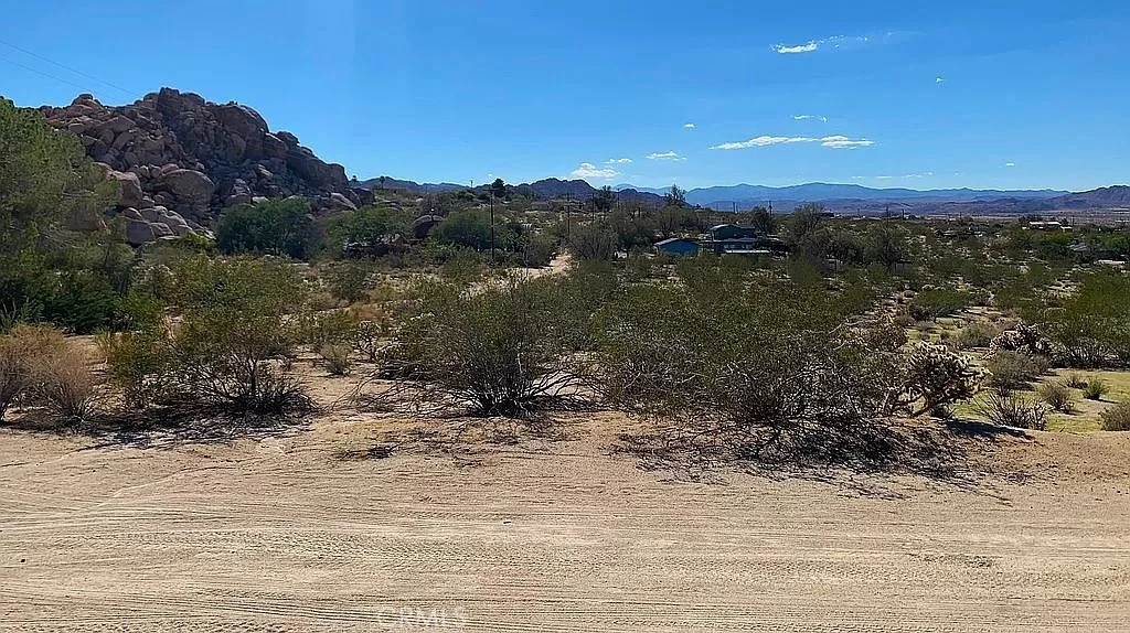 1 and 1/4 acres, corner lot at Mile Square Road and Foothill Drive. Paid water meter, Joshua Basin Water District. The property lies 1,240 feet from Joshua Tree National Park and the south adjacent property is the world class garden of Villa dei Fiori which can be seen in the photos. . To the north lies Casa Mila, a 3,000 sq. ft. recently built Southwestern colonial style house. The corner lot is basically level, sloping to the north. Bighorn sheep herds come down from the boulders to the property across Foothill, Bobcats, hawks, owls, and foxes live in the rocks, a perfect place to enjoy wildlife.
