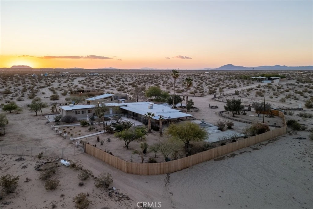 Welcome to 66136 Mars Dr, an unparalleled generational gem located in the serene 'Copper Mountain Mesa' area of Joshua Tree, offering a deluxe package that includes two spacious, beautifully maintained homes sprawling over 25 majestic acres (5 acres of house property, 20 adjacent acres). The main house features two grand bedrooms with two bathrooms, one appointed with a relaxing jacuzzi tub, and a walk-in shower. The companion house offers three complete bedrooms, two bathrooms, and a bonus or family room equipped with a walk-in closet that can also serve as an extra bedroom, giving it a total of 5 complete bedrooms and 4 bathrooms. For nature lovers and admirers, the property harbors established Joshua trees, mesquite trees, and an ancient saguaro cactus over a hundred years old, a testimonial monument on the landscape. The property features historic touches such as its remarkable walls, built using rocks hauled meticulously from copper mines over the last 55 years by the hands of the original owner's family. The parcel comes with a paid water meter, with an additional 10-acre lot to the south also primed and ready with a service-ready water meter. Relish the peace and tranquility as you watch the sunrise, sunset, and shimmering night stars, and take in the picturesque landscape views from the viewing tower. Indulge in the love and history that emanates from the very walls of this home, as this property promises a life away from tourist traffic and light pollution while being conveniently close to town services, promising a delightful experience of living amidst the natural flora and fauna of the lauded High Desert. The second smaller home was built without permits many years ago, but we want to be fully transparent.