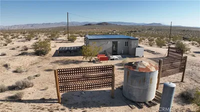 Recreational Cabin on 2.5 Acres in North Joshua Tree – Ready to Make Your Own. Opportunity awaits with this 2.5-acre parcel in the peaceful and scenic North Joshua Tree. Featuring a recreational cabin with rough plumbing already in place, an active water meter (piped to hose big next to cabin), and power nearby, this property is the perfect blank canvas to create your own desert retreat. Surrounded by wide-open views and serene desert beauty, this is an ideal setting for those looking to build a custom getaway, artist space, or homestead. The cabin’s structure is in place—ready for your vision and finishing touches. Located just a short drive from town, hiking trails, and Joshua Tree National Park, yet tucked away enough to offer privacy and solitude. Don’t miss this chance to invest in one of the High Desert’s most sought-after areas. Bring your creativity and make it your own. Note: Recreational cabins are not eligible for short-term rental use. Buyer to verify all zoning, permitting, and potential for conversion to a single-family residence.
