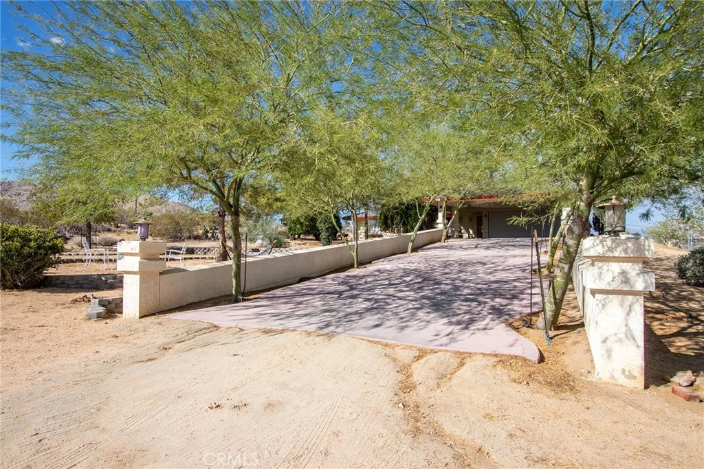 Premier 3 Bedroom 2 Bathroom Home With 1,616 Sqft On 1.25 Acres In One Of The Most Sought After Locations Of The Hi-Desert! Welcome to your private desert retreat, an architectural gem nestled in a serene cove just minutes from Joshua Tree National Park. This stunning home seamlessly blends organic design with modern comfort, showcasing distinctive dome-inspired architecture, smooth craftsman cement finishes, and breathtaking panoramic views of the desert and mountains from every angle. Step inside to discover a light-filled layout designed for relaxation and connection. The property is family and dog friendly, featuring a fully fenced backyard that provides a safe space for kids and pets to play under the desert sun. The expansive front yard, framed by elegant Palos Verde trees and native desert landscaping, leads down a long private driveway, creating a true sense of arrival and tranquility. In the backyard, a separate casita awaits, offering the perfect space for guests, creative projects, or a yoga studio for wellness retreats. This home also includes a brand new septic system and thoughtfully maintained utilities, ensuring comfort, reliability, and low-maintenance desert living. Located in a peaceful neighborhood, this sanctuary is just a few minutes' drive from the entrance to Joshua Tree National Park, as well as local dining options and the vibrant town center of Joshua Tree, while still feeling a world away. Experience the perfect blend of nature and modern living in this unique desert oasis.