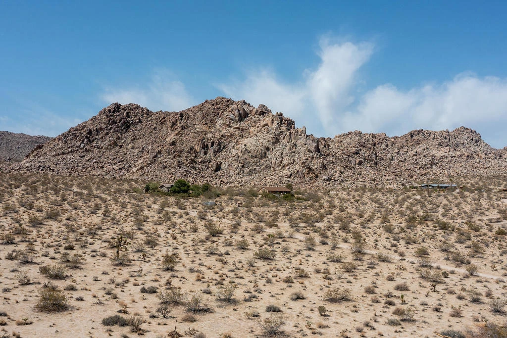 Designer remodeled home with skyline views! Set on 5+ acres of hillside in the highly desirable Panorama Heights neighborhood. Turn-key 3 bed 3 bath plus a large den that could be used as a 3rd bedroom with over 1,500sf. Pebble stone driveway with ample parking leads to the wraparound concrete patio and walkway to the front door. Living room with new floors, high sloped ceiling, recessed lighting, and gallery wall. Kitchen with new appliances, two breakfast bars with one as an island countertop. Stainless steel refrigerator, microwave, oven and cooktop, Abundant space with new cupboards and long counter tops. Additional dining area with built in cabinetry and glass sliders to the rear patio. Laundry room with double stack washer and dryer and butcher block counter. Large master bedroom with walk-in closet. Master bathroom with marble and glass shower. Guest bedroom with private bath. Backyard concrete patio enjoys picnic tables to enjoy dining alfresco with friends under the stars. STR permit approved. Inspiring views of the boulder studded mountains in the Joshua Tree National Monument. Captivating vistas for miles. Copper Mtn, Bunker Mtn, Mt Bartlette, the Bullion Mtns, and Mt San Gorgonio with snow capped peaks. Beautiful sunsets and shimmering city lights at night. Horse property. Less than 1000ft to the JTNM trails with gorgeous boulder gardens and canyons. Modern architectural new homes can be seen throughout the neighborhood. The high land value in Panorama Heights makes for sound investing. The county may allow for building another home and guest homes on this lot to expand your luxury compound. Short trip to organic restaurants, cafes, bars and boutiques in the JT Village. Close to the JTNM main gate where about 3 million tourists visit the park annually. 55 minutes to Palm Springs. Call for a showing today. (Tiny home on wheels & furniture is not included in the sale) Has 433a