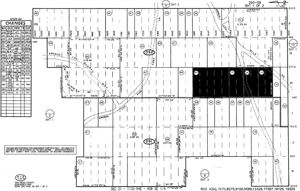 Lucky land opportunity in Julian, California, which is in San Diego County. These lots are located in the Harrison Park neighborhood and is about 60 miles to San Diego airport and 100 miles to Ontario airport. Street access by one of the lots and the three adjoining lots are included in the purchased for a total lot size of 18,731 square feet. Parcel numbers are 293 092 15 00,293 092 14 00, 293 092 13 00 and 293 092 43 00. Latitude and longitude coordinates are: 33.024873,-116.568715.