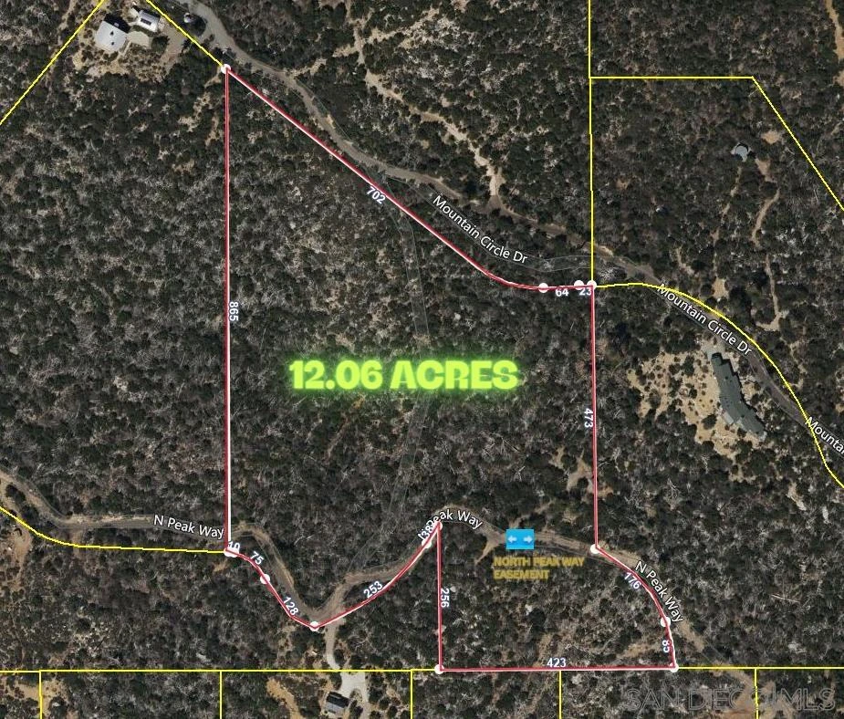 Building on this 12.06-acre parcel would present unparalleled, stunning views of the Pacific Coast from the North Peak of the majestic Three Peaks of Cuyamaca State Park. This property has a water meter and a septic system that was installed in 1993 with a 1,000-gallon tank, which has not been in use since 2003. The property previously housed a mobile home.