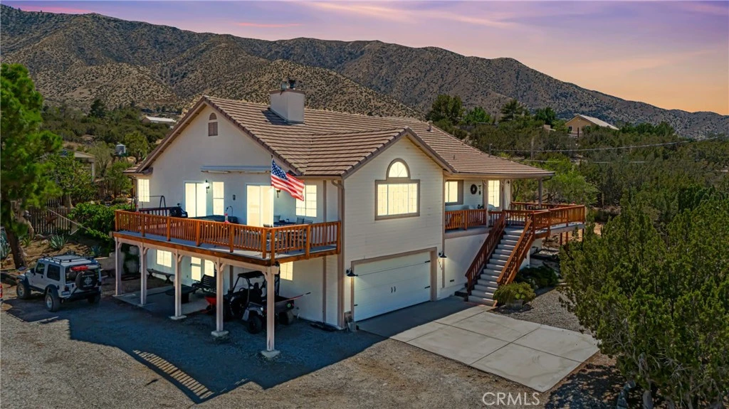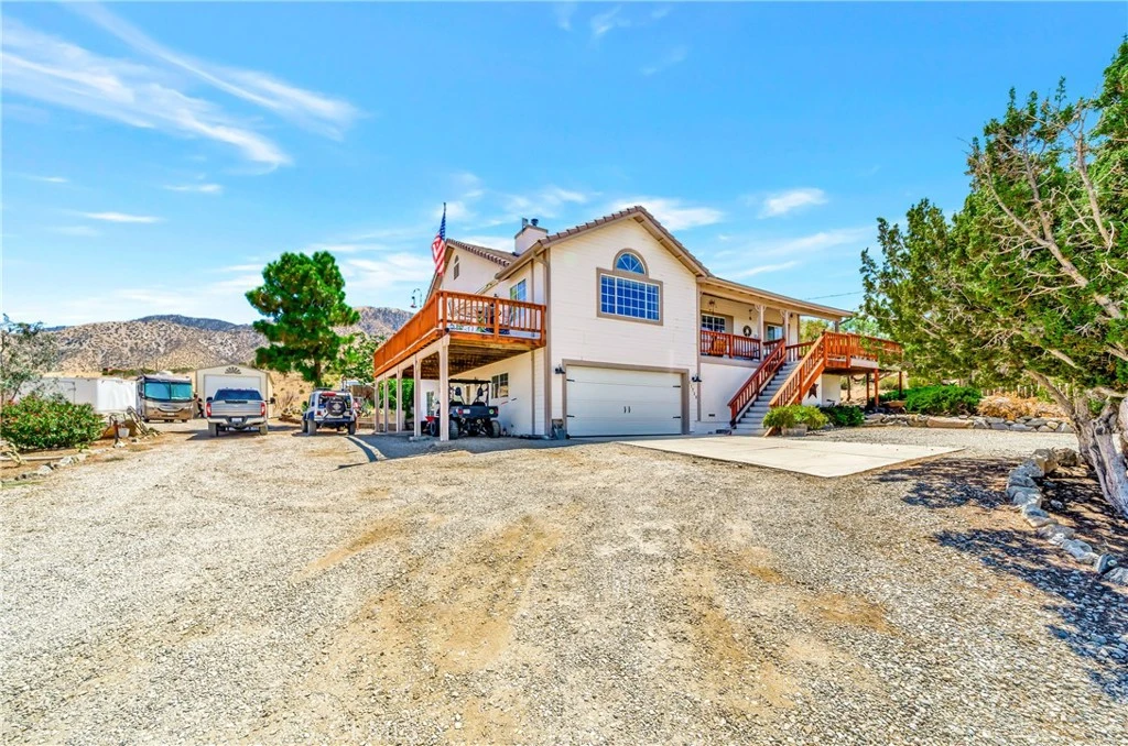 Grand Ranch Two-Story Estate in the Scenic Juniper Hills Community. This Warm & Inviting Estate Nestled in the Picturesque Juniper Hills Sitting on 2.50 Acres of Serene, Usable Land with Breathtaking Panoramic Views of the Mountains. This Gorgeous Home Offers Four Bedrooms & Three Bathrooms Featuring 3,188 sq. ft. of Thoughtfully Designed Living Space. This Custom Two-Story Home is Perfect for those Seeking Privacy, Space, and Versatility. Step Into a Home that Exudes Rustic Ranch Charm, with Classic Country-Style Architecture & Rich Wood Features Throughout, Including Exposed Beams, Wood-Paneled Accents, & Warm Finishes that Give the Home a Cozy, Timeless Feel. The Spacious Living Areas are Anchored by a Charming Potbelly Stove, Perfect for Gatherings on Cool Evenings. The Chef's Kitchen Featuring Ample Cabinet Space, a Large Center Island with a Built-In Range & a Breakfast Bar. The Open-Concept Dining Room Flows Seamlessly into the Patio Deck Complete with a Stylish Atmosphere for Effortless Gatherings. Cozy up During Winter Nights by a Stunning Rock Fireplace in the Luxurious Primary Suite. The Primary Suite Boasts a Large Walk-In Closet & an En-Suite Bathroom with a Large Custom-Tiled Shower & a Soaking Tub that Looks Out onto a Peaceful Patio Oasis. The Guest Bathrooms are Tastefully Decorated with a Ranch-Inspired Feel, Featuring Rustic Finishes & Natural Tones that Perfectly Complement the Home's Country Aesthetic. Additional Features Include a Private Well for Water Independence, & Two Oversized Covered RV Garages, One of Which Includes a Fully Covered Carport Providing Ample Space for RVs, Boats, Trailers, or Extra Vehicles. Downstairs, You'll Find a Cozy Ranch-Style Game Room with Its Own Built-In Bar & Fireplace, along with a Full Bathroom, an Ideal Space for Entertaining, a Private Guest Suite, or Multi-Generational Living. Looking for a Private Retreat, or Equestrian Property! Juniper Hills is a Hidden Gem Offering Rural Charm with City Convenience