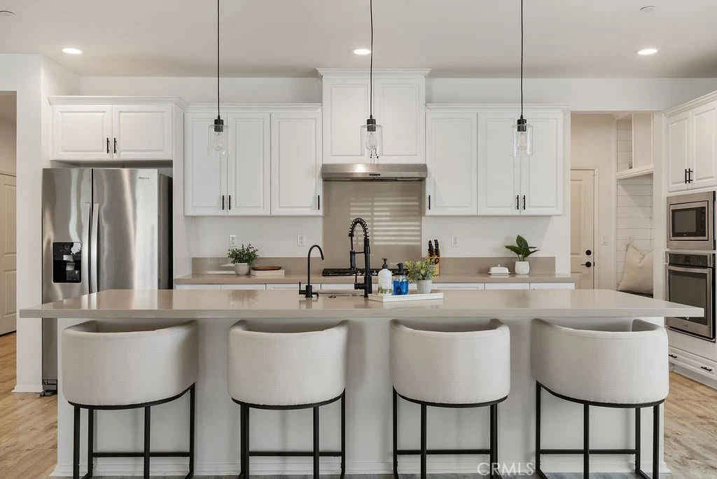 Welcome to 11661 Forsythia St. in Jurupa Valley. This well-appointed home offers a functional layout, modern finishes, and comfortable indoor-outdoor living. Natural light fills the open floor plan, where the spacious living area flows easily into the kitchen. The kitchen features white cabinetry, stone countertops, and quality appliances, with plenty of workspace and storage. Four bedrooms provide flexibility for family, guests, or a home office. The primary suite includes a large walk-in closet and an en-suite bathroom with dual sinks, a soaking tub, and a separate walk-in shower. Upgraded vinyl plank flooring runs through the main living areas, while plush carpeting adds comfort to the bedrooms. Outside, the low-maintenance desert landscaping and synthetic turf create an easy-care yard designed for year-round enjoyment. Conveniently located near schools, parks, shopping, and major commuter routes, this home combines comfort, efficiency, and location.