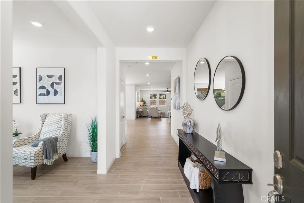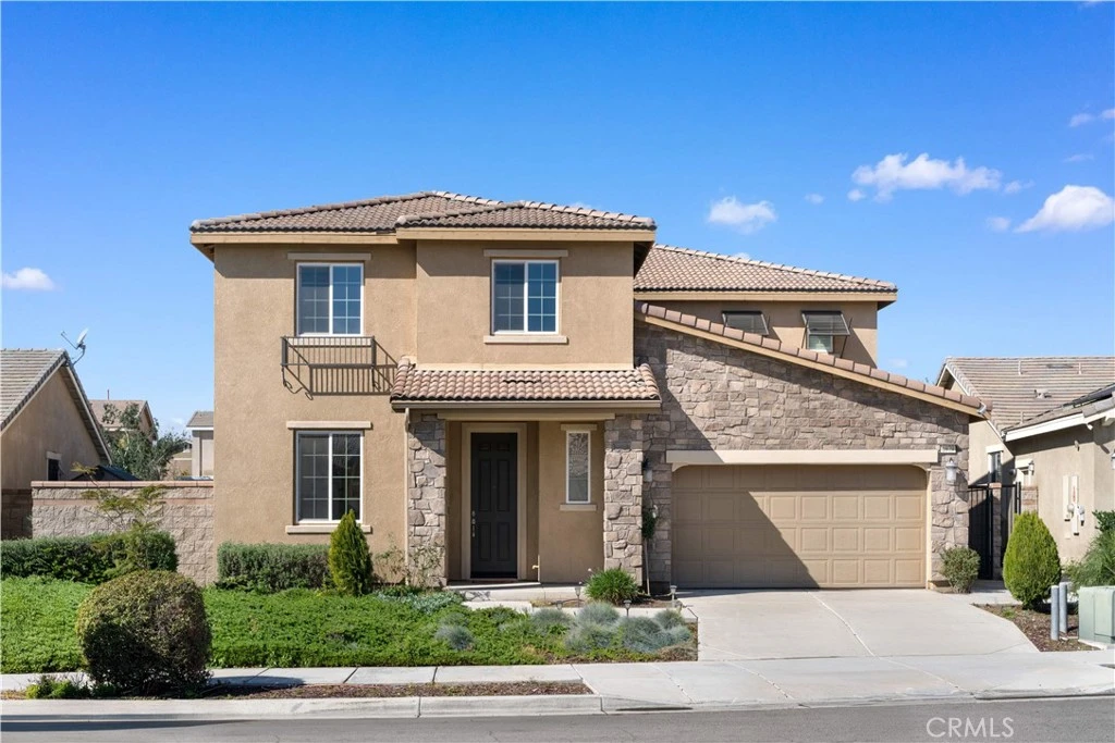 Welcome to this beautifully maintained, lightly lived-in home in almost new condition, with numerous thoughtful improvements throughout. The interior features tile flooring on the first level and premium carpet upstairs, upgraded windows with elegant wood shutters, and a kitchen finished with quartz countertops. Professionally designed front and backyard landscaping create inviting and functional outdoor spaces. The flexible floor plan offers one bedroom and one full bathroom on the first level, along with a spacious open living area ideal for a home office, fitness space, or optional bedroom conversion. The second level includes four additional bedrooms, a den, and two bathrooms, including a generously sized primary suite with exceptional space and comfort. The home has been occupied less than six months total over the past eight years, offering a rare opportunity to own a residence that feels fresh and well preserved. Located in the award-winning Norco school district within the desirable Riverbend area, a move-in-ready home ready for its next chapter!