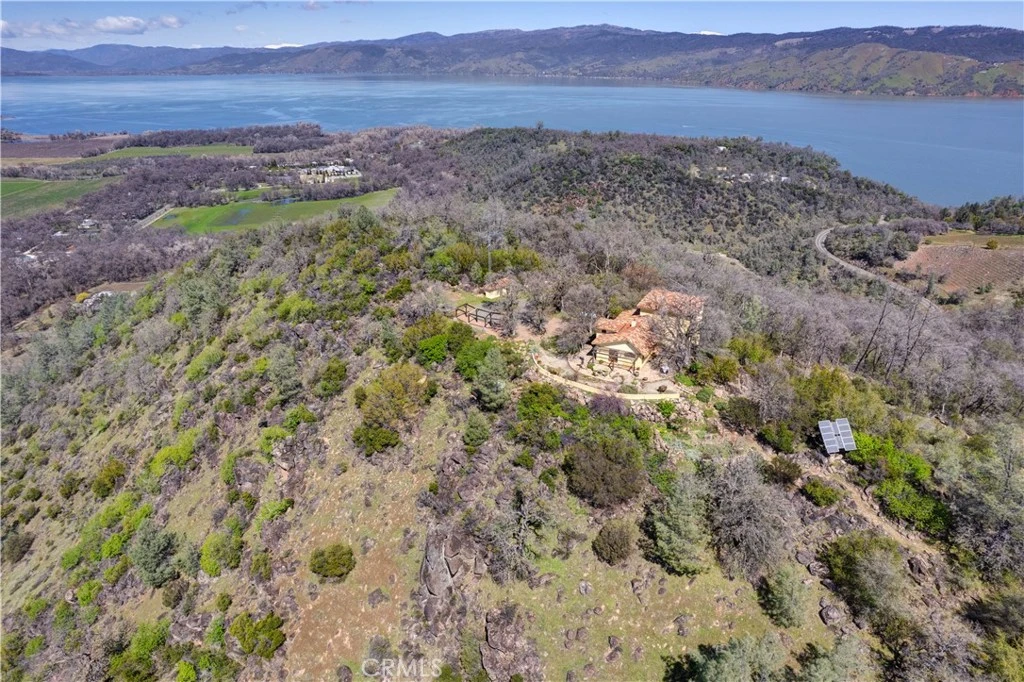 Incredible Tuscan Villa atop Mount Dali-Dona has panoramic views of Clear Lake, Big Valley & Mount Konocti. You will feel like the rest of the world disappears the moment you enter this property. As you make your way up the wildflower-lined driveway, the manzanita and mature oaks will welcome you to this incredible home. The residence is built with imported antique beams, French country-style kitchen with fireplace, quartzite counters, unique old-world aesthetics, heated floors, dual solar/PG&E power, and a wood stove. The property features 3 levels, 3 bedrooms and 3 bathrooms, wine cellar, large basement, formal living room, office, walk-in pantry. Beyond the home large fenced area with irrigated garden beds and a planting shed. A separate building with ADU potential offers storage, 1 half bath, a loft and a sink, adjacent to the vineyard with separate electric meter and septic. 1.6 acres of Rhone grapes and olive trees. Also included is the sale, de-stemmer/crusher, filter press & barrels to produce your own wine! This expansive yet cozy home is full of charm and has unparalleled views from every angle. The estate is situated on 27+/- acres and has gated access. Close to downtown Kelseyville, restaurants and shops. Borders the Clear Lake State Park with great hikes, lake access and camping. Secluded and peaceful, this property offers an incredible opportunity to observe wildlife and disconnect from the day-to-day hassle. Potential for ADU or rental property.