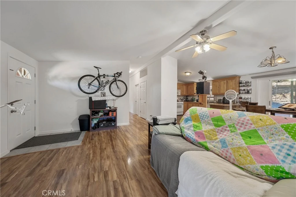 TURN-KEY and WELL MAINTANED 2004 3-bedroom, 2-bathroom 1188 sq ft manufactured home. Living room with dining area that opens to kitchen which offers all appliances to stay with the home. Primary bedroom with full bathroom. Separate laundry room area with washer and dryer included and can access thru the garage. Mini splits-1 year new (2024), plus Central heating and the Central air is 4 years new-(2022) per seller. Ceiling fans in every room. Double pane windows. A nice Trek deck in front. Super clean 2-car garage with shelves on one wall. Concrete driveway with plenty of parking. Low maintenance landscaping in the front and back area and fenced backyard. Under the house has storage area. Public water. Septic system. ROOF IS 5 YEARS NEW (2021) per seller. HOA fees $145.00 yearly. Property is located on a corner lot in a peaceful area. FHA LOANABLE.