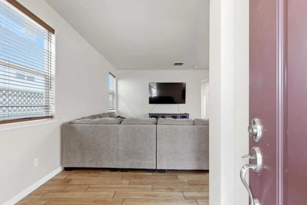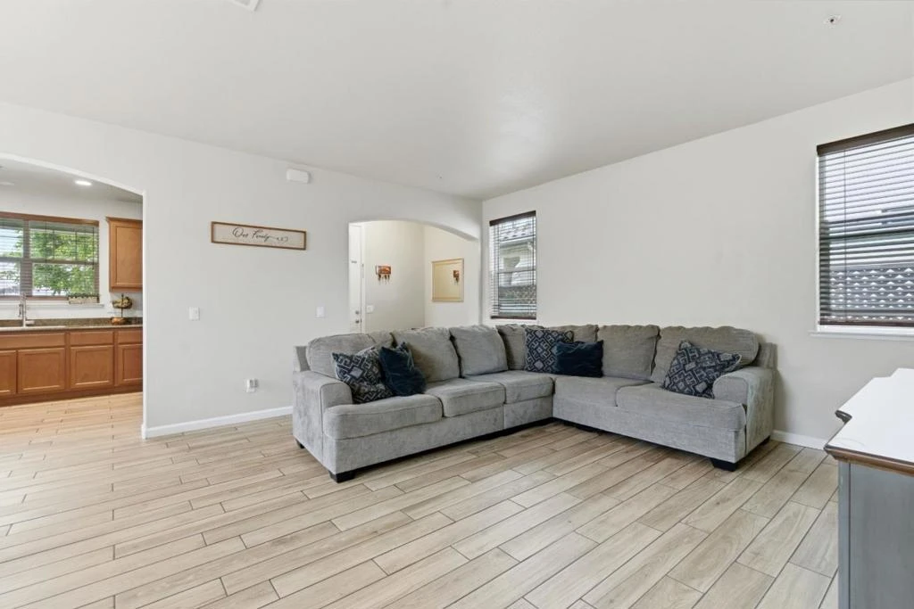Located in the desirable Mills Ranch community, this like-new two-story home offers a premium corner lot, modern finishes throughout, and a beautifully maintained setting along a tree-lined street with mature landscaping. The thoughtfully designed floor plan features tile flooring on the main level and luxury vinyl plank upstairs, with no carpet throughout. The main level includes a spacious great room that opens to the kitchen, creating an ideal layout for both everyday living and entertaining. The primary suite is conveniently located downstairs and features a double vanity, large walk-in closet, and a separate tub and shower. Additional main-level features include a laundry room with a folding counter, half bath, and a large linen closet. Upstairs offers three additional bedrooms, a full bathroom, a versatile bonus area perfect for a playroom or study, and an additional linen closet for ample storage. The backyard is finished with concrete, providing a low-maintenance outdoor space ideal for relaxing or entertaining.