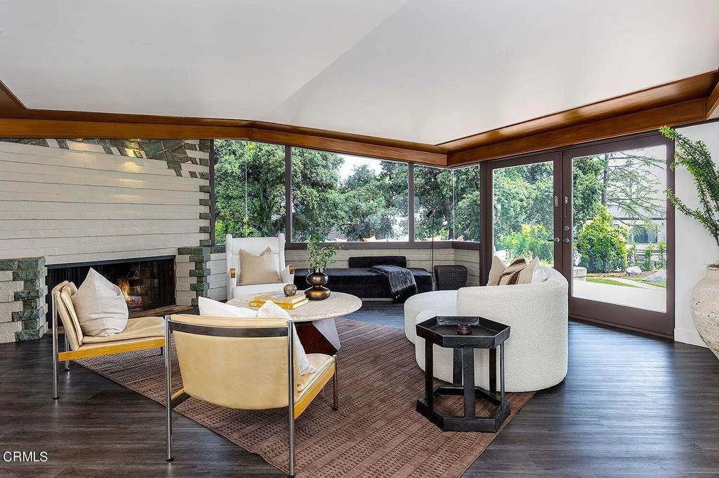 An exceptional opportunity to lease the iconic Gainsburg Residence (1948), a true Mid-Century Modern masterpiece designed by Frank Lloyd Wright Jr. Ideally situated on a sprawling 29,703 SF fenced lot in a tranquil, park-like setting at the base of the San Gabriel Mountains, this 3,172 SF architectural gem seamlessly blends timeless design with serene California living.The thoughtfully designed floor plan offers 4 bedrooms and 4 bathrooms, including a private study off the primary suite, along with a formal dining room, den/family room, and a spacious living room anchored by an oversized cement block fireplace. Walls of windows and large wood-framed glass doors flood the home with natural light and open to the expansive backyard, creating effortless indoor-outdoor flow.Architectural details abound, including rich black walnut cabinetry, multiple custom built-ins, and carefully curated ambient and accent lighting throughout. The chef's kitchen features stainless steel countertops, a butcher block island, gas range/oven, convection oven, microwave, dishwasher, and refrigerator. Washer and dryer are also included.Outdoor amenities include lush green space, a large patio ideal for entertaining, and a tranquil water pond -- all within fully fenced grounds offering exceptional privacy. Additional features include solar panels and a 2-car carport with storage.Conveniently located near the La Canada Flintridge Country Club and within the award-winning La Canada Unified School District, this remarkable lease offering provides the rare chance to reside in a true piece of architectural history in one of Southern California's most desirable communities. The home is staged in the photos, staging has been removed and home is NOT FURNISHED and ready for you to bring in your own furnishings. PETS OK TO SUBMIT