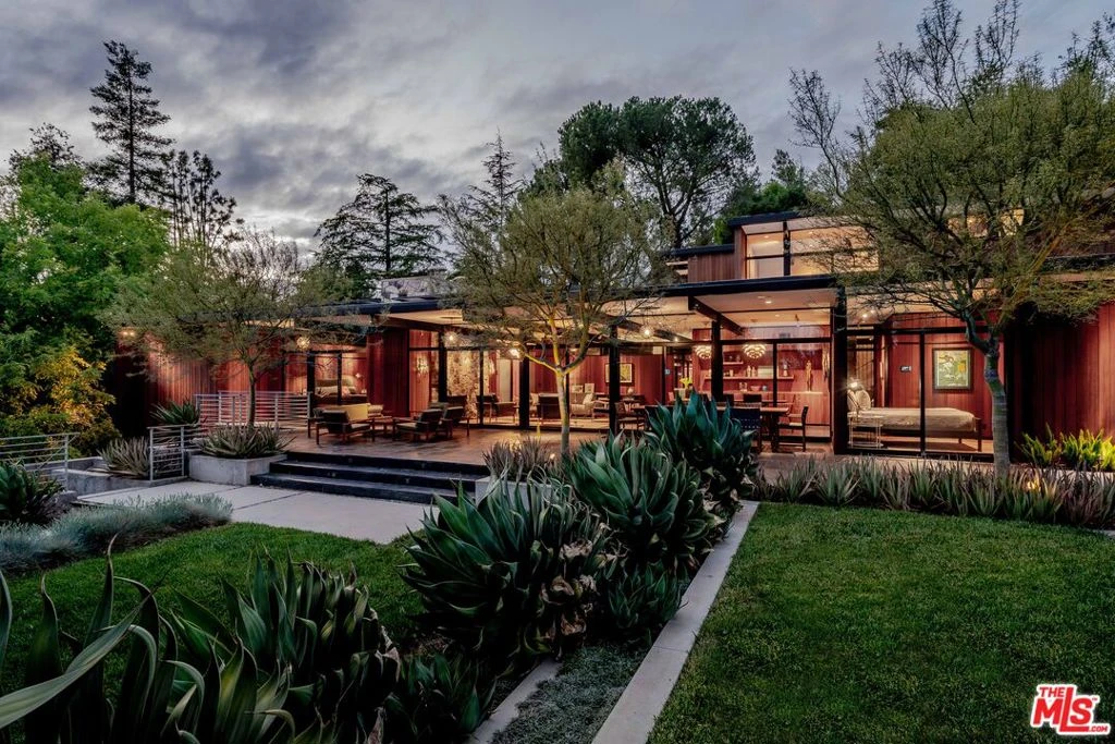 Mid-Century Modern Masterpiece located on a quiet cul-de-sac in the beautiful foothills of La Canada Flintridge. This architectural marvel was custom built in 2008 and awarded a prestigious Architectural Merit Award by the Pasadena Foothill AIA. Exceptional design with the utmost attention to detail is showcased through walls of concrete, stone, redwood and glass with black steel accents and custom lighting throughout. Situated on over a 1/2 acre lot, this home features 5 bedrooms, 5 baths, a bright open floor plan and sleek minimalist aesthetic. Floor-to-ceiling windows with massive Fleetwood sliding doors open to spectacular private patios, lawns, decks and meticulous landscaping, seamlessly blending indoor and outdoor living flawlessly. There's a custom Bulthaup kitchen with top of the line Gaggenau appliances. Family/Media Room with TV, recessed movie screen, projector and surround sound. A private seating area features a stunning cantilevered staircase and stone fireplace. Outdoors is an amazing entertainment space with kitchen, pool, jacuzzi, sauna and steam shower. Complete Crestron home automation system includes all lights, climate, A/V, automated recessed blinds, security and cameras. Other features include fully-owned solar panels, new Ruberoid roofing system, dual primary suites, expansive temp controlled wine cellar, custom redwood interior built-ins, central vac system, 3 fireplaces, full laundry/utility room. Exterior workshop area with 2 bonus rooms perfect as a home office, gym or potential guest space. The long private driveway leads to a carport with oversized garage and storage room. Soon to be included in the award winning La Canada School District. This home is turnkey and truly one of a kind.