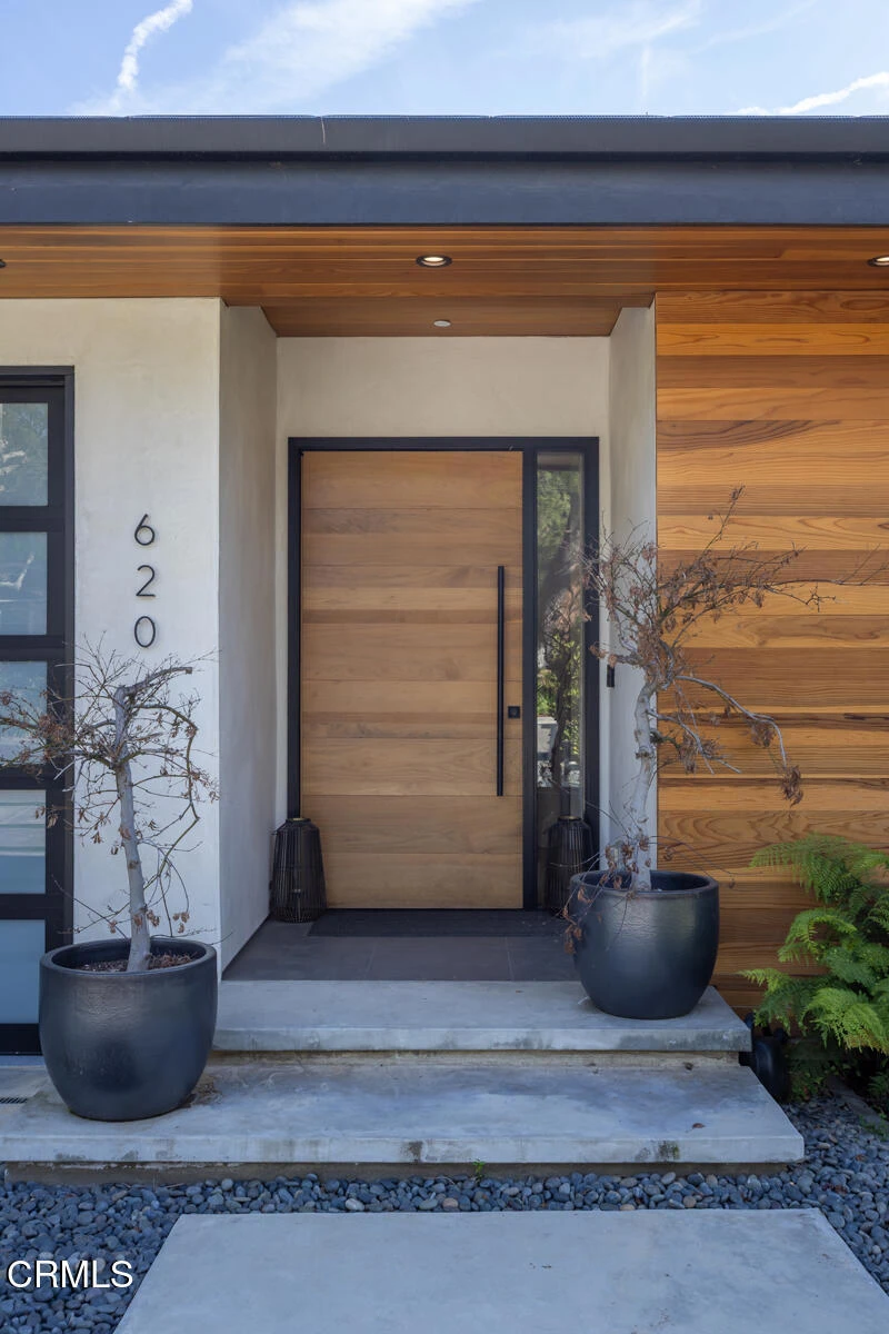This modern California residence seamlessly blends refined contemporary design with effortless indoor and outdoor living. Set on a spacious, flat lot, the property offers exceptional privacy and resort-style amenities, including a dazzling infinity edge pool and spa, fire pit lounge, private basketball court, and a detached converted garage complete with its own kitchenette, laundry, and shower, ideal for guests, a studio, or a pool house.The open-concept main living area is designed for entertaining, with pocket sliding doors that fully disappear to create a true indoor and outdoor experience. The chef's kitchen anchors the home with a striking waterfall island, wine fridge, and state-of-the-art appliances, flowing naturally into stylish living and family spaces.The main home features four spacious bedrooms and five well-appointed bathrooms, along with a large laundry room and thoughtful modern finishes throughout. There is an attached, two-car garage to the main residence, providing added convenience and versatility.Striking curb appeal is defined by warm wood accents, a modern driveway with turf inlay, and welcoming stones surrounding the entryway. Combining luxury, functionality, and privacy, this property captures the essence of quintessential California living.