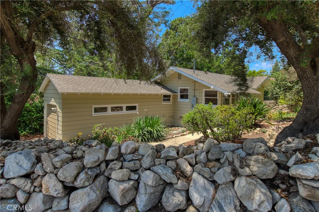 Adorable garden cottage in Briggs Terrace. Originally built in 1949 as the residence for the groundskeeper of a large estate nearby, this custom home feels like a vacation cabin for someone who loves gardening within its old stone garden walls, tall pine, and majestic row of olive trees. From the garage, the garden path leads to the original mahogany front door which opens to another time with preserved wood beamed ceilings and walls that have never had a coat of paint. The kitchen is well sized with gorgeous wood cabinetry that matches the ceiling and walls, preserved tile counters, a new range, and original wood windows overlooking the garden view. The central hall leads to the large bedroom with more preserved custom wood detail and the full bath with preserved tiles intact. This floorplan was purposedly designed to accommodate the future addition of a bedroom off the hall. The grounds envelop this preserved structure and keep it within the time of its purpose - a place of rest to enjoy the pleasures of gardening and the simple beauty of growing things. The Owners have been good stewards during their tenure and have updated the roof, updated the electrical panel, and just installed a new tankless water heater. There is also a large laundry room, a one car garage with room for more storage, close proximity to Laughlin Farm, and the award-winning schools of this sought after neighborhood.