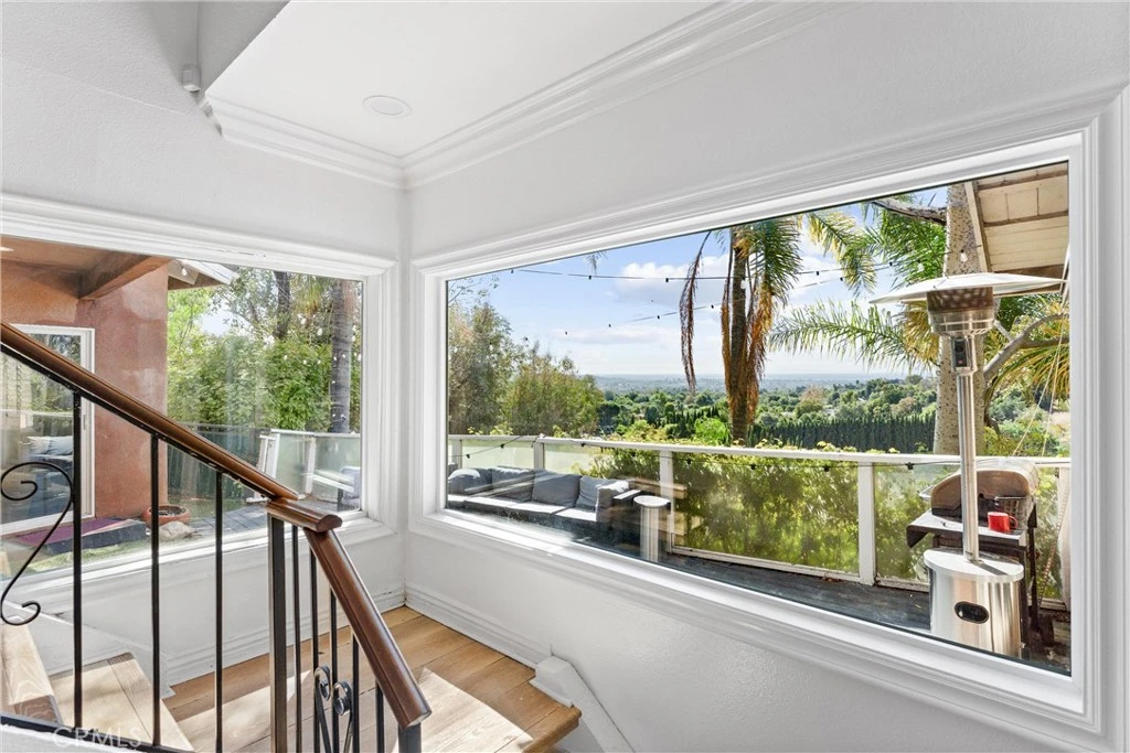 Welcome to 105 Reposado! This stunning corner lot, perched on the hillside, offers breathtaking views of Catalina Island, city lights, and the ocean. Enjoy multiple decks nestled among the treetops, providing a peaceful and natural setting. The owner has recently completed many upgrades, including new flooring and paint throughout, a newly remodeled kitchen with elegant marble countertops, a glass tile backsplash, new cabinets, and new appliances. Large windows frame picturesque views that can be enjoyed from inside or outside dining areas. The entry is open to the grand staircase, views and custom fireplace. A formal area that feels warm and cozy. There is a family room and an additional living space above the garage.This home boasts four bedrooms and three bathrooms, a spacious family room, and dedicated outdoor dining and seating areas. The luxurious primary suite includes a spa-like bathroom with a spa tub, a walk-in closet, and city light views to enjoy while relaxing. Above the garage, a separate living area with its own entrance, living space, fireplace, and bathroom is ideal for extended family or guests. It can be used as an office, game room, theater, or whatever you can imagine. The outdoor areas are perfect for enjoying the views and privacy, featuring an outdoor patio with a waterfall, and the upper level delivers a tranquil space. The main entryway with a custom door is at the top of the driveway, offering a sense of privacy and the beauty of the natural environment. Experience impressive curb appeal with a stacked stone driveway and pavers, lined with trees, leading you to a gated estate surrounded by lush landscaping.