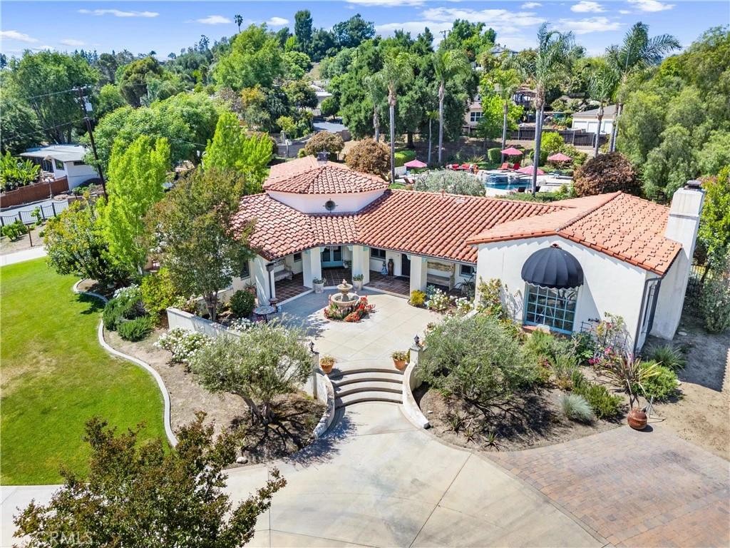 Welcome to 1422 Recado Road. As you pass through the private entry gate, you'll immediately appreciate the expansive 56,628 square-foot lot. This incredibly rare, flat and usable land offers breathtaking views. A charming courtyard, complete with a fountain, guides you to a welcoming wrap-around front porch. The original front door opens into a truly remarkable and beautifully restored 1929 Spanish Revival home – a residence you've only dreamed of. The home boasts a functional floor plan, perfect for both entertaining and family gatherings. A long hallway leads to the east wing, where you'll find a stunning great room featuring a fireplace, a dramatic 12-foot beamed barrel-vaulted ceiling, original French windows and rich mahogany floors. This wing also includes two bedrooms featuring luxurious hardwood floors, a shared bathroom and a walk-in closet. One of these bedrooms offers a special retreat – its own private courtyard, ideal for relaxing and enjoying the property’s beautiful landscaping and greenery. A unique highlight of this home is the octagon tower, which houses a formal dining room with an impressive 15-foot ceiling. The west wing is where you will find two bedrooms and a bathroom that features a high coved ceiling, an arched tub/shower and dual sinks. The kitchen is a chef's delight, equipped with commercial-grade appliances such as a 6-burner and dual-oven Dacor range, a custom vent hood, a built-in 48" refrigerator/freezer, a convenient pot-filler faucet and a substantial granite island. The kitchen also features a spacious casual dining area and a fireplace. Adjacent to the kitchen are a walk-in pantry with a butcher block counter and a separate laundry room. This exceptional home also offers a finished basement. The stunning and expansive rear yard is an entertainer's paradise, featuring a pool, spa and built-in BBQ – creating a true resort-style ambiance where you can feel like you're on vacation every day. The flat, usable lot offers endless possibilities, with room to bring your own vision to life. Enjoy the existing vineyard of Black Spanish grapes, avocado and citrus fruit trees, vibrant flowers and large grassy areas. This fully gated property benefits from a private road with easy access and offers tranquil views of city lights and the surrounding hills. A peaceful retreat, this unique home is just minutes to freeways, shopping, dining, schools and entertainment.