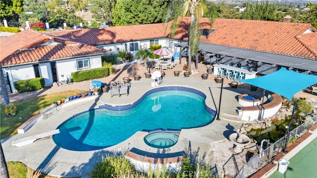Welcome to 1445 Darlene! This custom-built, single-level home offers a formal entry through impressive double doors, high ceilings, and upgrades throughout. It features 4 bedrooms and 4 bathrooms within 4,000 interior square feet. Situated on a sprawling, oversized, flat lot, it boasts beautiful views and a variety of amenities including a pool, spa, tennis court, fire pit and koi pond — truly resort living at its best! The interior includes a primary en-suite with an additional open-room closet, a secondary primary en-suite, two additional oversized bedrooms, a family room, living room, and a dining room with a skylight that brings in an abundance of natural light. The kitchen is open to the family room and features an island, ample counter space, a pantry, and counter seating. It overlooks the backyard pool, tennis court, and a covered patio with an outdoor seating counter. A 4-car finished garage with storage and epoxy floors is attached. The home provides a light, bright, and airy feel throughout. The exterior is equally impressive with lush landscaping, a huge grassy area, a fruit tree grove, and a gazebo. The gated property offers privacy and easy access, cul de sac, additional parking, RV potential, and a separate guest parking pad.
