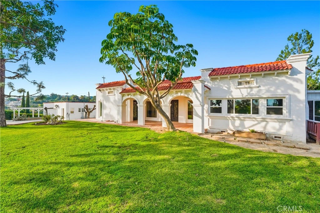 Welcome to 1847 Descanso Dr. in La Habra Heights. This classic 1920's Spanish home is situated on a flat 1.8-acre lot. This charming single-level residence features exceptional workmanship throughout, including hardwood floors and an updated family kitchen with an eating nook and plenty of windows that offer natural light. The home offers three bedrooms, two bathrooms, and a separate sunroom. The exterior features a pool, spa, gazebo, tennis court, and a separate sports court. The gated entrance leads to an abundance of parking finished with pavers. The remarkable grounds include almost 2 acres of useable land and a variety of fruit trees, including kumquat, orange, lemon, grapefruit, pomegranate, and figs. The home is impeccably maintained inside and out. You will find newer windows throughout and an upgraded modern kitchen with stainless steel appliances and granite countertops. The bathrooms have been updated with modern finishes, including a soaking tub, custom tile, and quartz countertops. All upgrades are carefully integrated with the Spanish style, starting with the iron doors and arched porch that greet you upon arrival. Located in a private setting with convenient access to Fullerton Rd, the property also includes a separate room off the garage that can be used as a workshop, gym, or office.