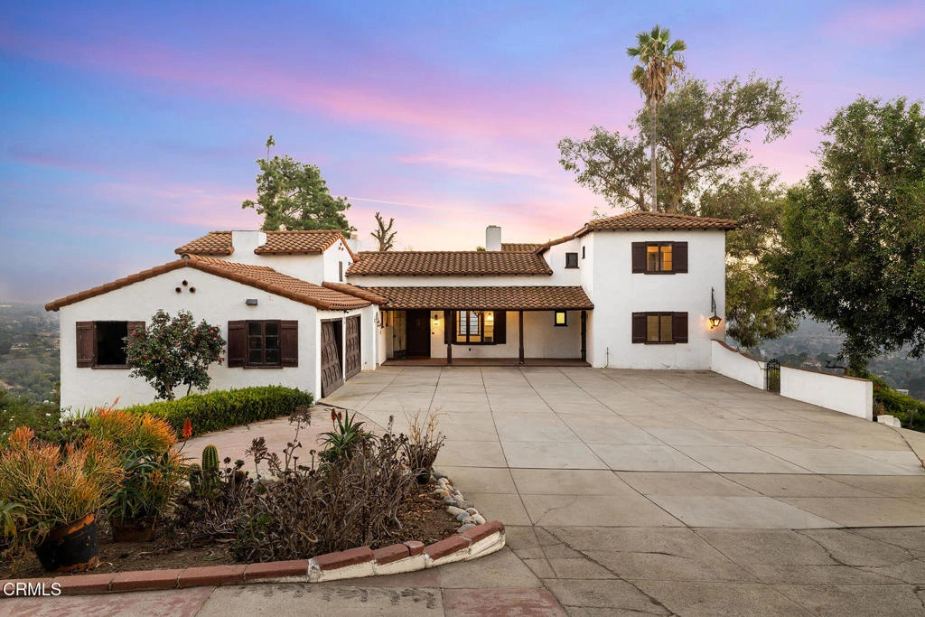 Step into the pages of Hollywood history with this rare and magnificent Spanish Hacienda Estate, an architectural masterpiece originally commissioned for legendary Hollywood talent agent Dema Harshbarger. Built for a luminary who shaped the golden age of entertainment, spearheading NBC hits like The Fred Allen Show and serving as press agent for the iconic Hedda Hopper, this historical home is a preserved treasure of timeless design and glamour. Poised on over two panoramic acres between two APN numbers, this estate offers an extraordinary setting with breathtaking views stretching to the ocean. The estate boasts unmatched privacy, making it a haven of endless possibilities. The gated entry welcomes you to 'El Retiro' where you'll journey down a long drive surrounded by lush grounds to find a spacious motor court. Step inside to find the impressive living room with double-height, wood-beamed ceilings, french doors, a stately fireplace, period light fixtures, and wrought iron details sourced from around the world. A grand staircase leads to two well-appointed bedroom suites, with the primary showcasing some of the property's best views, french doors, and a private balcony. The south wing of the main level has an additional bedroom suite, a wood-paneled study with fireplace, and a separate library. Off the living room, a large dining room enjoys sweeping views and opens to the rear patio through french doors. The kitchen is full of possibilities, complemented by a separate breakfast area bathed in natural light from numerous windows. Beyond the kitchen, a dedicated laundry area leads to stairs accessing a private bedroom suite and additional flex space. On the ground level, there's a bonus room with its own bath and separate entrance. Each bathroom in the home exudes vintage charm, adorned with exquisite period tiles and fixtures. An attached two car garage and two separate basement areas provide abundant storage space. Outdoors, a large brick patio is elevated and separate from the refreshing pool, perfectly positioned to enjoy the unobstructed views. Whether you're seeking a private retreat, a show-stopping entertaining space, or a piece of living history, this estate delivers a truly one-of-a-kind opportunity.