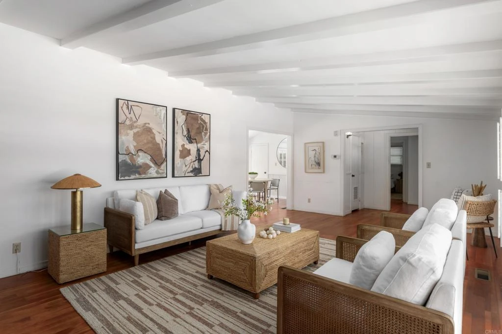 Rare chance to secure a property with horizon ocean views from both the front and rear yards, all while enjoying convenient single-level living just minutes from the Village, beaches, and top-rated schools. The current home reflects its vintage charm with open beam ceilings, a classic brick hearth, and wood board-and-batten exterior detailing. Positioned on a spacious, mostly flat 0.3-acre parcel, the residence occupies only a portion of the site, offering significant room to expand, redesign, or build anew. Adding a second level could further enhance the ocean views. A sweeping semicircular driveway and front-facing garage provide generous parking and create separation from the street. For buyers with vision, this property offers an exciting opportunity to unlock its full potential.