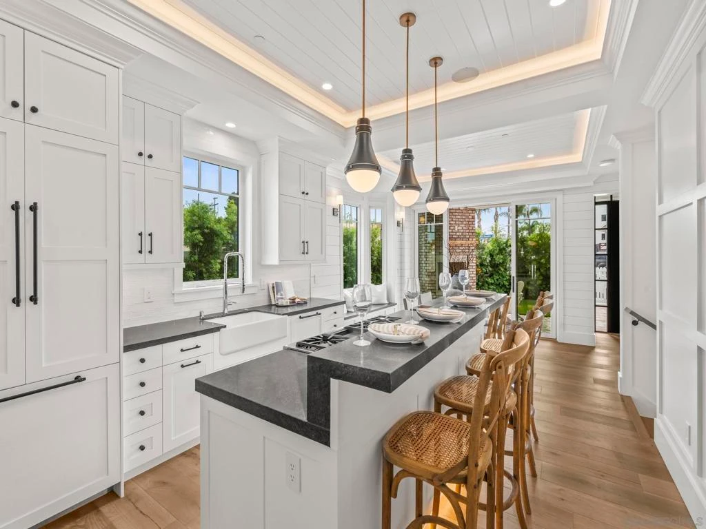 Only one 5BR New Construction Home Left of the 4 built! Experience the pinnacle of coastal luxury in this brand-new 5BR, 3,473 sq ft detached 'Lock-n-Go' Beach House perfectly positioned in La Jolla’s coveted Beach Barber Tract—just moments from Windansea Beach, Little Point and the Village. Bathed in natural southern light, this architectural standout showcases refined craftsmanship and thoughtful design, featuring a striking tambour wood cupola primary bath ceiling detail, chef’s Thermador appointed kitchen with tucked away walk-in catering pantry, and a unique entertainer’s Media Room Lounge complete with designer wet bar, Control 4 Home Automation/AV System, 50+ bottle wine column fridge and elevator access to all levels. The panoramic rooftop deck captures sweeping coastal vistas of the La Jolla, Blacks & entire San Diego coastline to the north. Every detail reflects custom luxury & maximized use of space—from bespoke wood millwork and tongue-and-groove ceilings to modern Lutron lighting, Solar, Tesla Battery & Control 4 Home system. Perfect as a multigenerational 2nd Home, lock-and-leave coastal escape, or premier luxury rental potential, 466 Westbourne defines modern La Jolla living just steps from year round surf, sand, sunsets! BUILDER: Attention to detail & pride of ownership define this rare La Jolla new construction offering, blending modern luxury with timeless design. Timeless black-and-white lines, copper downspouts, and custom washed brick frame a bright, sun-soaked entry patio, outdoor fireplace & yard adorned with lush hedges. KITCHEN / LIVING: The main level welcomes you with vaulted alder beam ceilings, gas fireplace, and light beachy wide-plank oak floors. The entertainer’s kitchen features a walk-in working pantry with 2nd sink, 2nd dishwasher, and microwave, plus a full Thermador appliance suite—36” paneled fridge, 48” range top with griddle, 30” double ovens, Kohler farmhouse sink, and natural slab center island with bar stool seating. LOWER LEVEL: All floors Accessible by elevator, the expandable lower-level Media/Game Room offers a custom wet bar, sink, Thermador 50+ bottle wine column, beverage fridge, floating shelves, AV system, and crown molding LED lighting. This level boasts a private guest room with en-suite bath, the 5th Room for your needs, owner storage room, and a spacious walk-in laundry room. TOP FLOOR: The impressive Primary Suite captures sunset views and flows into a spa-inspired bathroom featuring a freestanding Kohler soaking tub under a tambour wood cupola ceiling, herringbone inlay tile, dual vanities with LED mirrors, makeup counter, and rainfall shower with multi-function fixtures. A must after a day in the sun! OTHER: 1) Laundry room with front-load washer/dryer, quartz counters, and farm sink. 2) Solar Panels Installed with Tesla Powerwall Battery. 3) Two-car garage with EV Outlet. 4) Exterior beach surf shower. 5) Control 4 Smart Home AV System with built-in speakers, Lutron lighting, mult cameras installed & expandability.