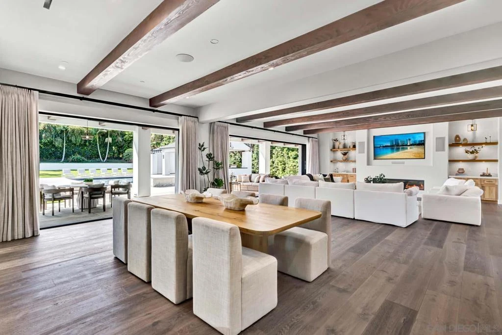 Welcome to this magnificent custom home in Muirlands on exceptionally rare and expansive grounds, beautifully optimized with a huge pool and spa, and a covered outdoor "California" room with vaulted ceilings, three TVs, recessed lighting, and a fabulous outdoor kitchen barbecue area for entertaining family and friends al fresco, with vast lawns surrounding lush gardens. Meticulously designed for luxurious modern living, this grand residence offers gorgeous open wood beam ceilings, bright windows, and 28 feet of bi-fold doors for seamlessly enjoying your indoor-outdoor environment, a chef's kitchen with the finest quality appliances, and three bedroom suites on the main floor. Upstairs, the primary suite includes a private terrace with lovely views, plus secondary bedrooms, an office, and two secondary suites. A prestigious, exceedingly rare find in this sought-after location just minutes from beaches, village, and fine restaurants.